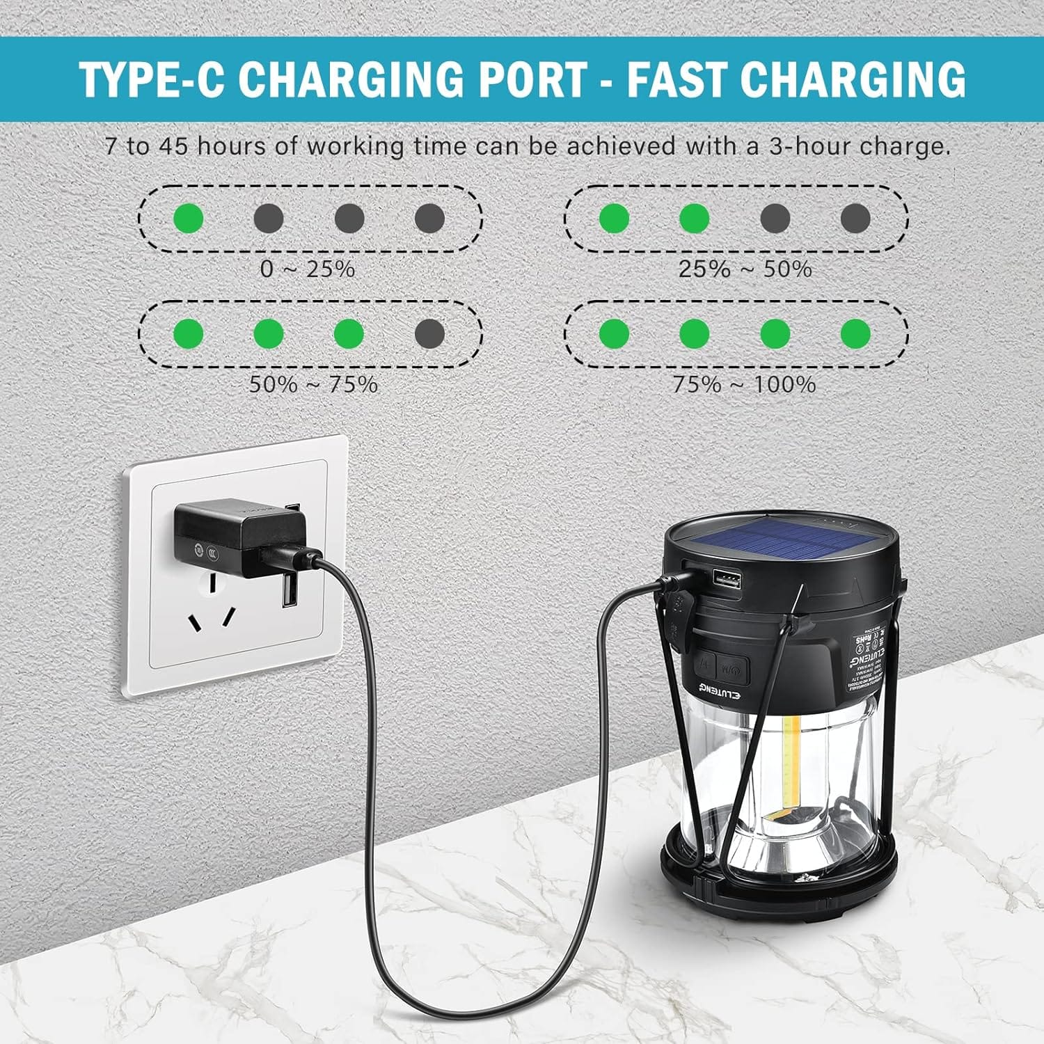 Το LED φανάρι κάμπινγκ μας διαθέτει ενσωματωμένη μπαταρία 3000 mAh, παρέχοντας 3 τρόπους τροφοδοσίας. Περιλαμβάνει καλώδιο φόρτισης Type-C, ηλιακό υπόθεμα φόρτισης και δυνατότητα φόρτισης με 3 μπαταρίες AA (δεν περιλαμβάνονται). Οι πολλαπλές επιλογές φόρτισης εξαλείφουν τις ανησυχίες για διακοπές ρεύματος ή έκτακτες ανάγκες, καθιστώντας το ιδανικό για όλες τις υπαίθριες δραστηριότητες.