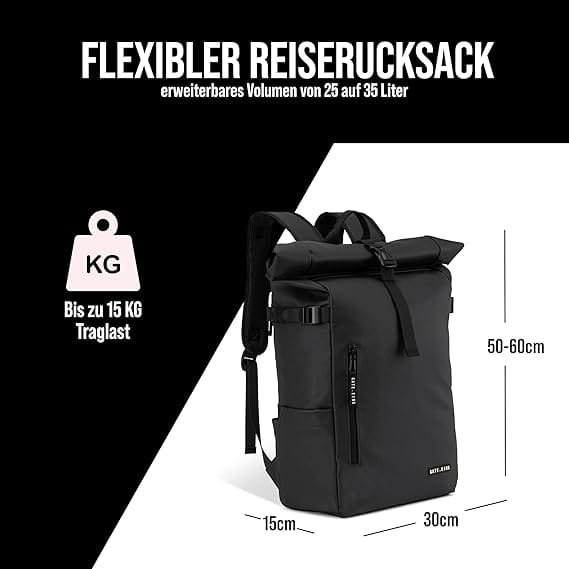 Χάρη στο πρακτικό roll-top σχεδιασμό του, το σακίδιο πλάτης μπορεί να επεκταθεί εύκολα από 20 έως 27 λίτρα, προσφέροντας επιπλέον χώρο όταν το χρειάζεστε. Με διαστάσεις 30x15x50-60 cm, είναι ιδανικό για καθημερινή χρήση, ταξίδια ή εκδρομές, ενώ το roll-up πάνω μέρος συνδυάζει λειτουργικότητα και μοντέρνα αισθητική.