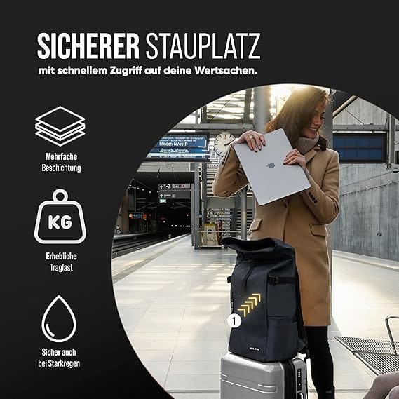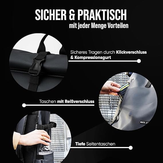 Σε διαχρονικό μαύρο ή μπλε μονόχρωμο χρώμα, το GATE.EINS Copenhagen σακίδιο πλάτης συνδυάζει την κομψότητα με την πρακτικότητα. Είτε ψάχνετε για το καθημερινό σας σακίδιο είτε για ένα ανθεκτικό ταξιδιωτικό αξεσουάρ, αυτό το roll-up σακίδιο καλύπτει όλες τις ανάγκες σας με στυλ και αξιοπιστία.