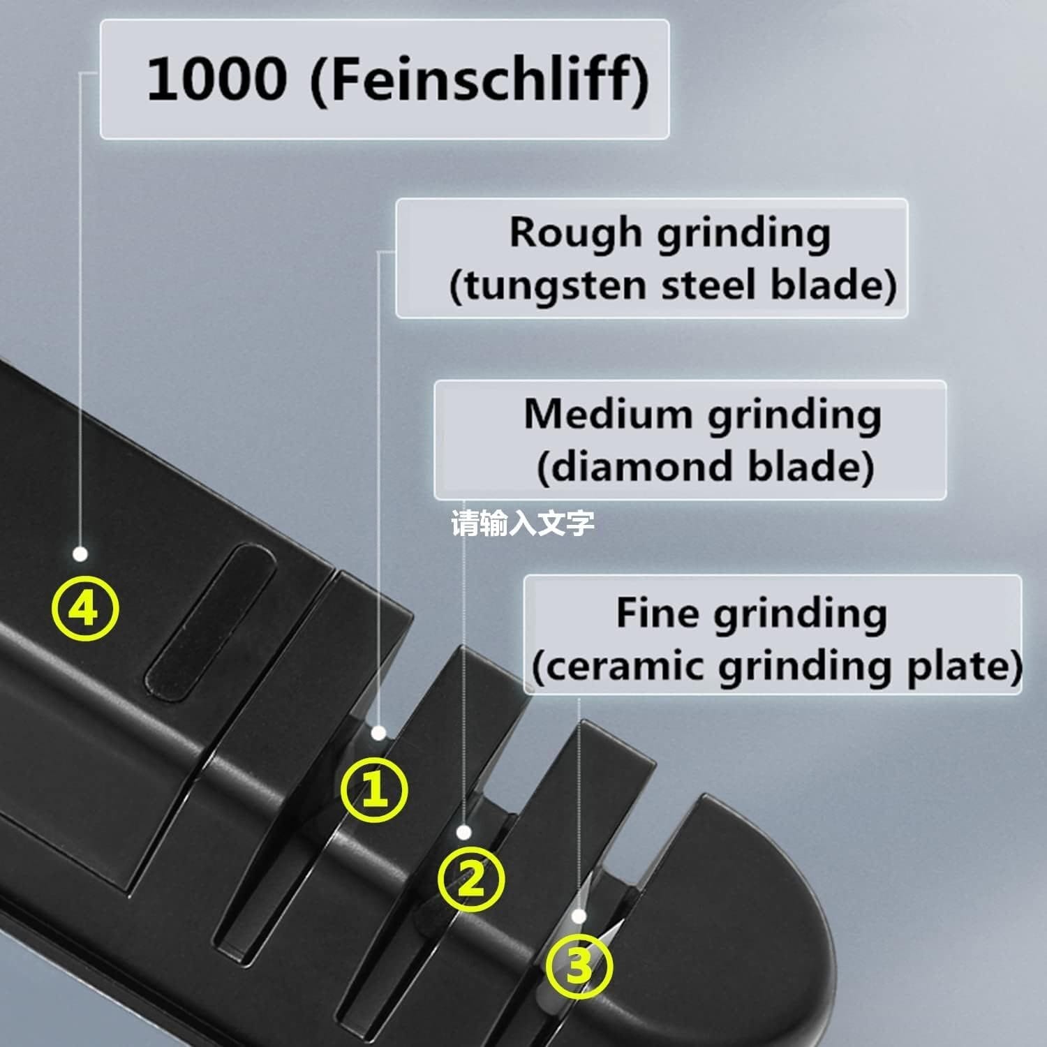 -4 x βήματα, 4 x υλικά, 4 x μέθοδοι λείανσης Νο. 1 Ράβδος διαμαντιού για τραχιά λείανση Νο. 2 Δίσκος από συμπαγές χάλυβα βολφραμίου για επισκευή, Νο. 3 Ειδική κεραμική ράβδος για λεπτή λείανση. Νο.4 για γυάλισμα.