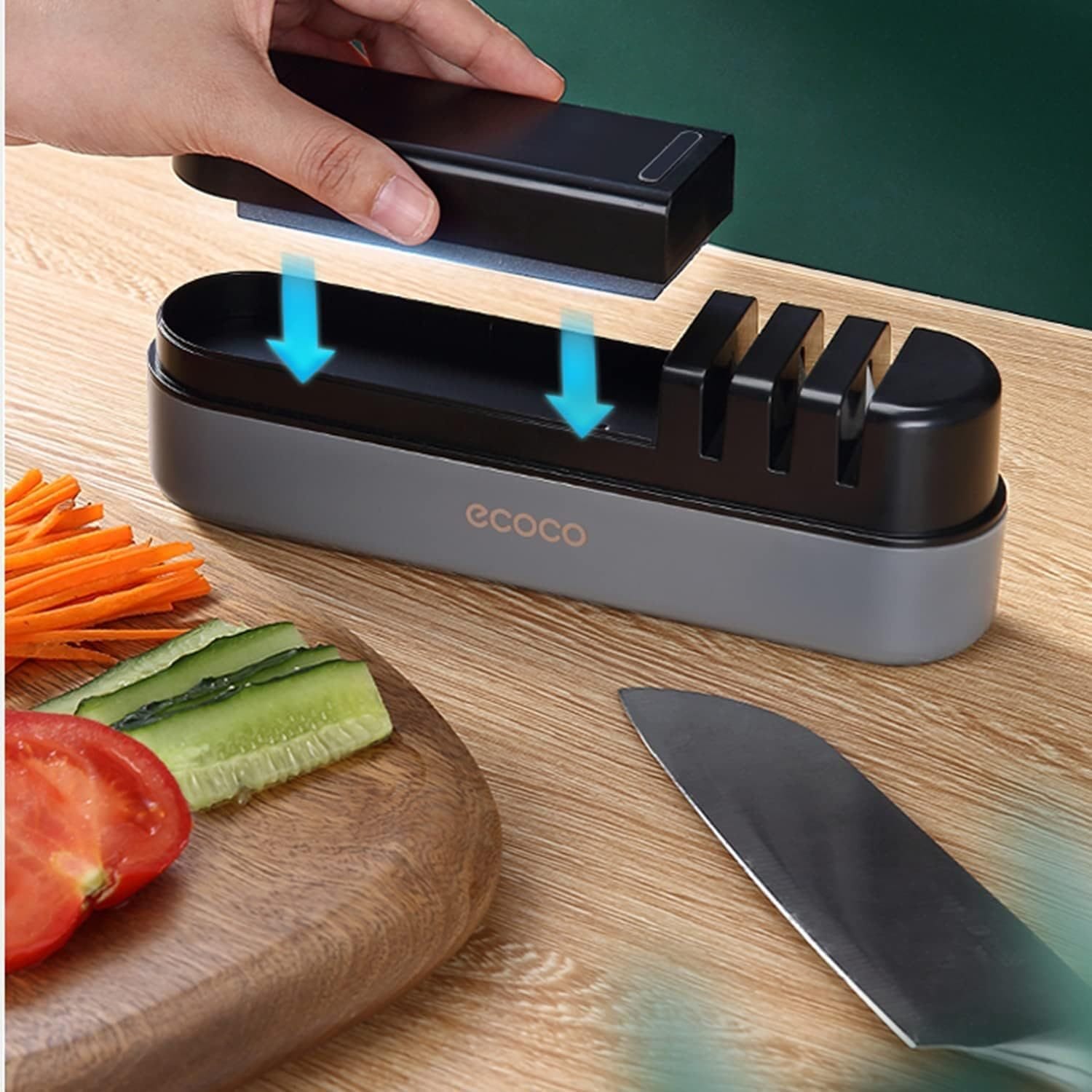 Το Ακονιστήρι Χειρός Μαχαιριών 4 Σταδίων Ecoco είναι η ιδανική λύση για ακριβές και αποτελεσματικό ακόνισμα μαχαιριών σε κάθε χρήση.”