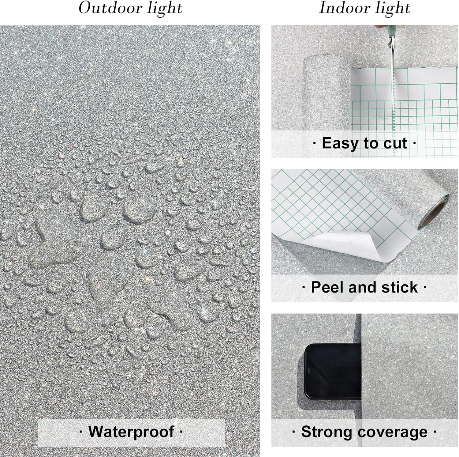 Μέγεθος: 40 cm x 300 cm / ρολό, ένα ρολό ταπετσαρίας μπορεί να καλύψει επιφάνεια 1,2 ㎡. Υλικό: Η ταπετσαρία είναι κατασκευασμένη από κολλώδες πλαστικό βινυλίου, το οποίο είναι ανθεκτικό στη φθορά και καθαρίζεται εύκολα. Στο πίσω μέρος υπάρχει μια αυτοκόλλητη στρώση που μπορεί να τοποθετηθεί σκίζοντας το χαρτί. Ασημί αυτοκόλλητη ταπετσαρία: Δώστε ζωή στους τοίχους και τα έπιπλά σας με τη μοναδική ασημί γκλίτερ ταπετσαρία της Yullpaper. Κατασκευασμένη από υψηλής ποιότητας βινύλιο, αυτή η χοντρή ταπετσαρία είναι ανθεκτική και μεγάλης διάρκειας. Η αυτοκόλλητη λειτουργία επιτρέπει την εύκολη εφαρμογή χωρίς πρόσθετη κόλλα. Χρήση: Τα συμπαγή χρώματα παίζουν σημαντικό ρόλο στην ομορφιά και τη διακόσμηση των σπιτιών. Αυτή η ταπετσαρία είναι κατάλληλη για τοίχους σαλονιού και κρεβατοκάμαρας και μπορεί επίσης να χρησιμοποιηθεί σε επιφάνειες επίπλων για να δώσει στα έπιπλά σας ένα μοναδικό στυλ.