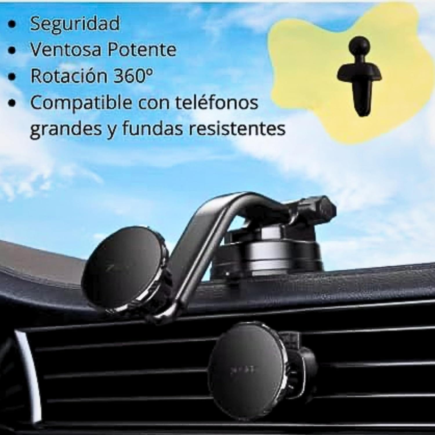 Αν προτιμάτε, παρέχεται επίσης ένα κλιπ, ώστε να μπορείτε να στερεώσετε τον μαγνήτη στον αεραγωγό. Για παράδειγμα, αν τον δανείσετε σε έναν φίλο και δεν θέλετε να απελευθερώσετε τον βραχίονα από την επιφάνεια του αυτοκινήτου σας, μπορείτε να χρησιμοποιήσετε τον μαγνήτη με τον σφιγκτήρα σε ένα άλλο όχημα. Είναι απλό και συμβατό με οποιαδήποτε μάσκα κλιματισμού ή θέρμανσης στο όχημα.