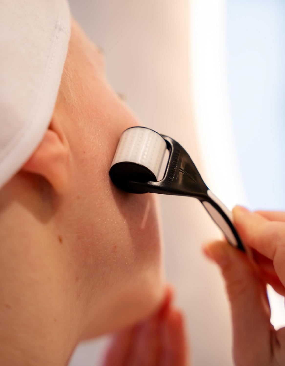 Το microneedling στο σπίτι μπορεί να διεγείρει τη φυσική διαδικασία αναγέννησης του δέρματος δημιουργώντας μια σειρά από λεπτές μικρο-τρυπήσεις στο δέρμα, οι οποίες βελτιώνουν την κυκλοφορία του αίματος και απομακρύνουν τα νεκρά κύτταρα. Μπορεί να βοηθήσει με το δέρμα με ατέλειες και τους διευρυμένους πόρους, και δίνει στο κουρασμένο, στρεσαρισμένο δέρμα μια νέα λάμψη! Η χρήση του Home-Care Dermaroller ενισχύει επίσης την απορρόφηση των δραστικών συστατικών του προϊόντος έως και 1000% – απλώς περιμένετε 15 λεπτά μετά το microneedling στο δέρμα σας και στη συνέχεια εφαρμόστε τη νέα σας περιποίηση προσώπου New Natural Line Skincare για βέλτιστα αποτελέσματα.