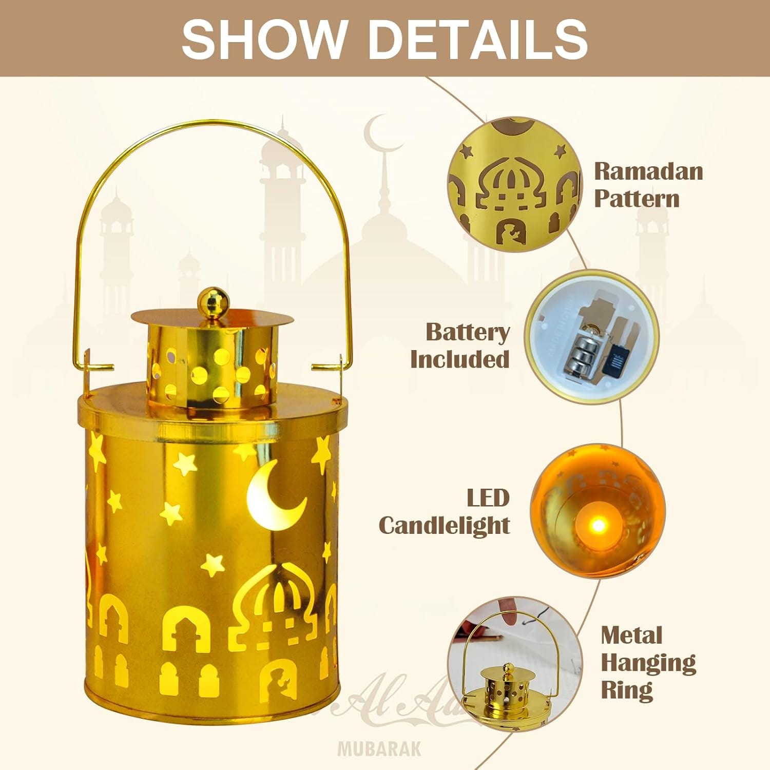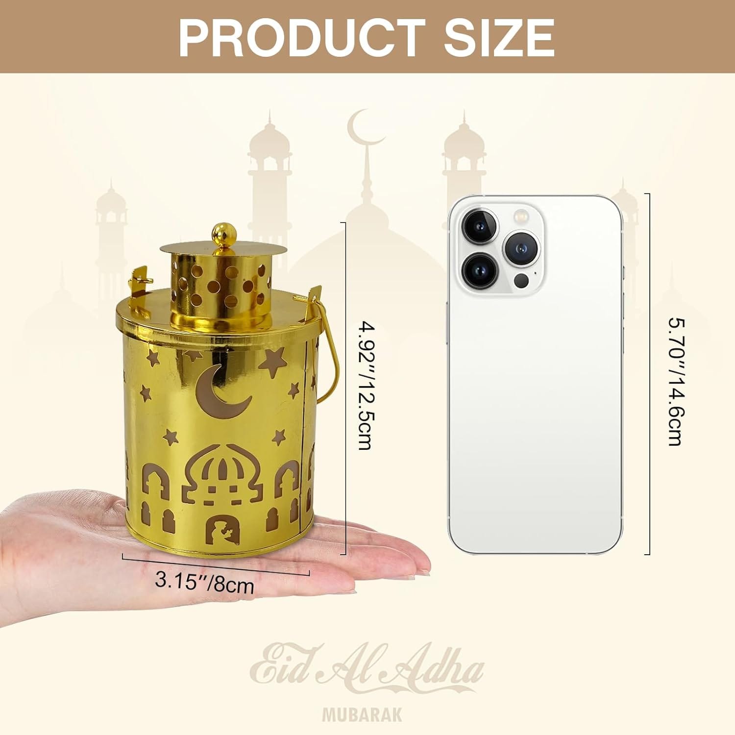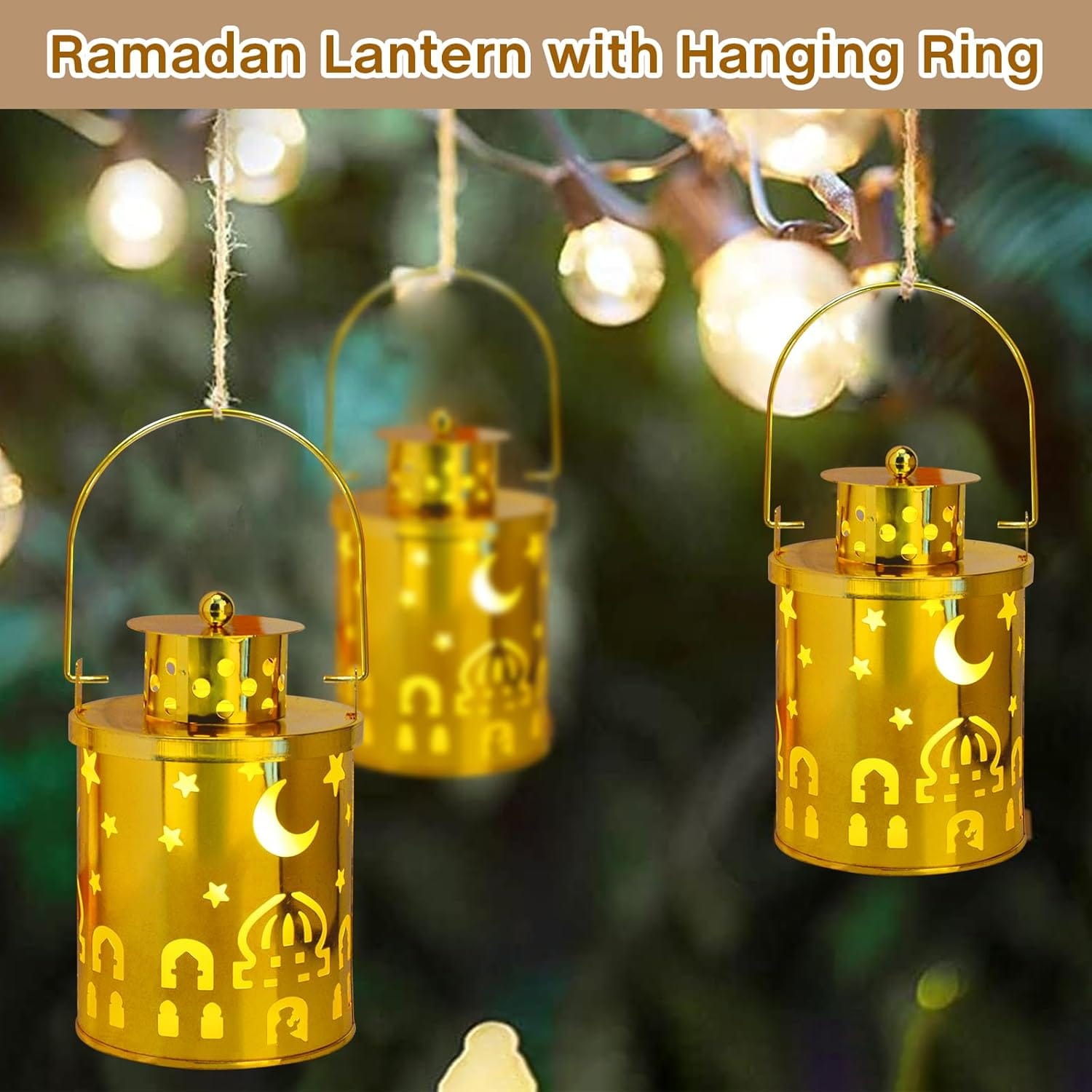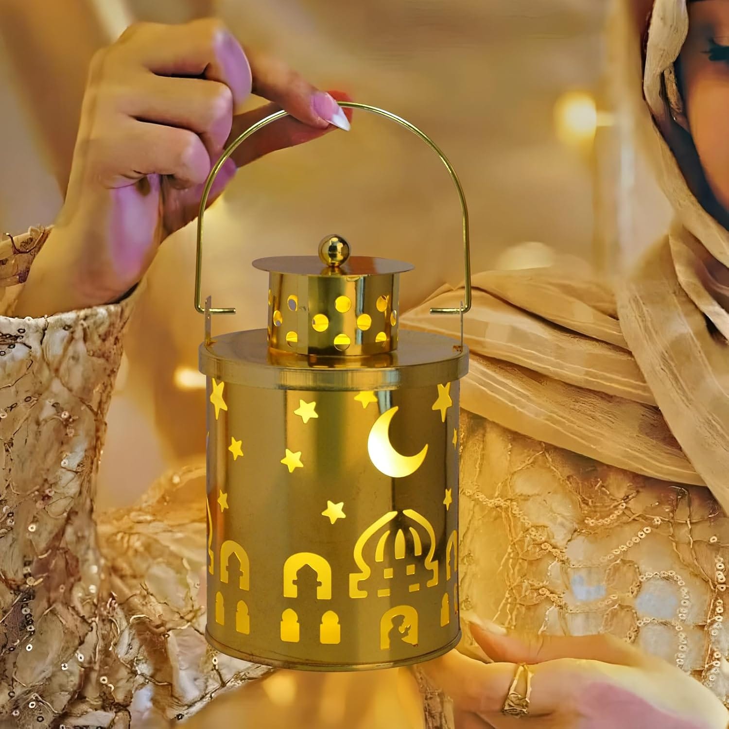Μοναδικός και κομψός σχεδιασμός: Το διακοσμητικό φανάρι διαθέτει ένα κομψό σχέδιο με παραδοσιακά στοιχεία, όπως αστέρια και φεγγάρι, που θυμίζουν τη μοναδικότητα του πολιτισμού και της ιστορίας. Τα μεταλλικά φώτα έχουν έναν εκλεπτυσμένο χαρακτήρα και είναι ιδανικά για οικιακή και γιορτινή διακόσμηση. Είναι το τέλειο διακοσμητικό για κάθε σπίτι, προσφέροντας μια γιορτινή ατμόσφαιρα.