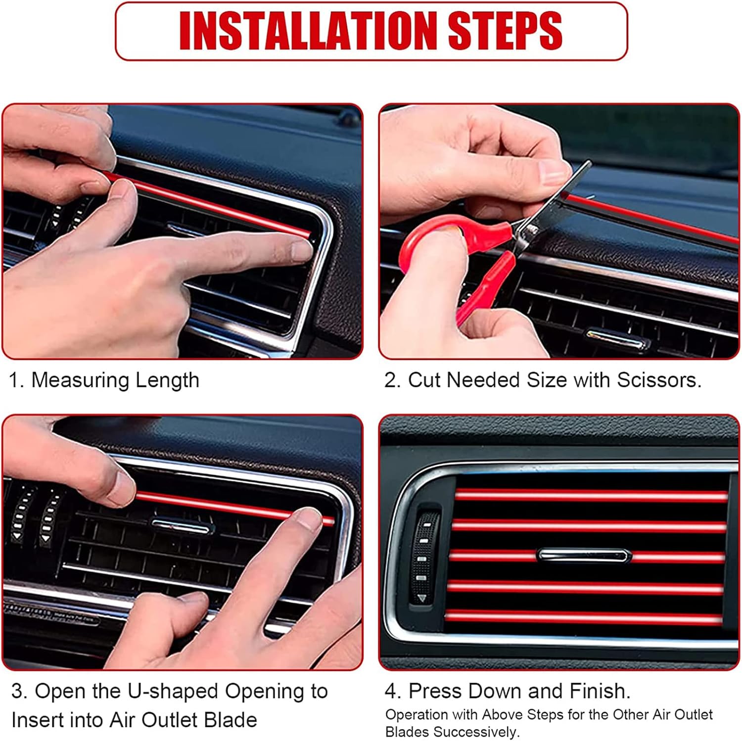 Εξατομικευμένη διακόσμηση – Οι αεραγωγοί αυτοκινήτου διαθέτουν έντονο, φωτεινό χρώμα που αναζωογονεί άμεσα το εσωτερικό του αυτοκινήτου σας, προσδίδοντας μοντέρνο και ξεχωριστό στυλ. Επιπλέον, η διακοσμητική λωρίδα προστατεύει από τη συγκέντρωση σκόνης, διατηρώντας το όχημά σας καθαρό και τακτοποιημένο.
