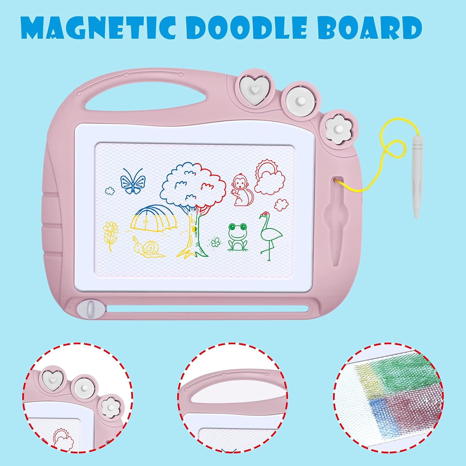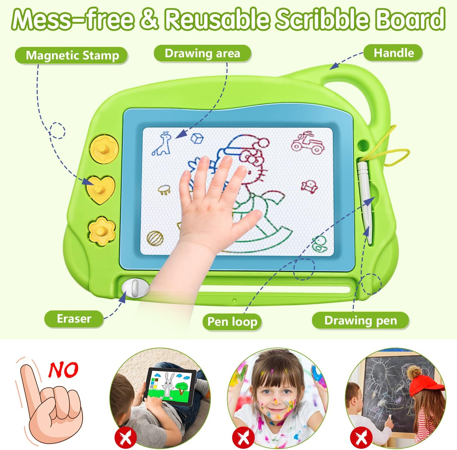 ΥΛΙΚΟ ΑΣΦΑΛΕΙΑΣ & 3 ΣΤΡΑΜΠΕΣ- Αυτή η σανίδα σχεδίασης από μη τοξικά πλαστικά υλικά ABS, χωρίς μυρωδιά και φιλική προς τα παιδιά, πληροί τα πρότυπα παιχνιδιών της ΕΕ. Έρχεται με 3 διαφορετικού σχήματος μαγνητικές σφραγίδες (κύκλος, λουλούδι και αγάπη). Το μαγνητικό στυλό σχεδίασης συνδέεται με κορδόνι, επομένως μην ανησυχείτε μήπως χαθεί.