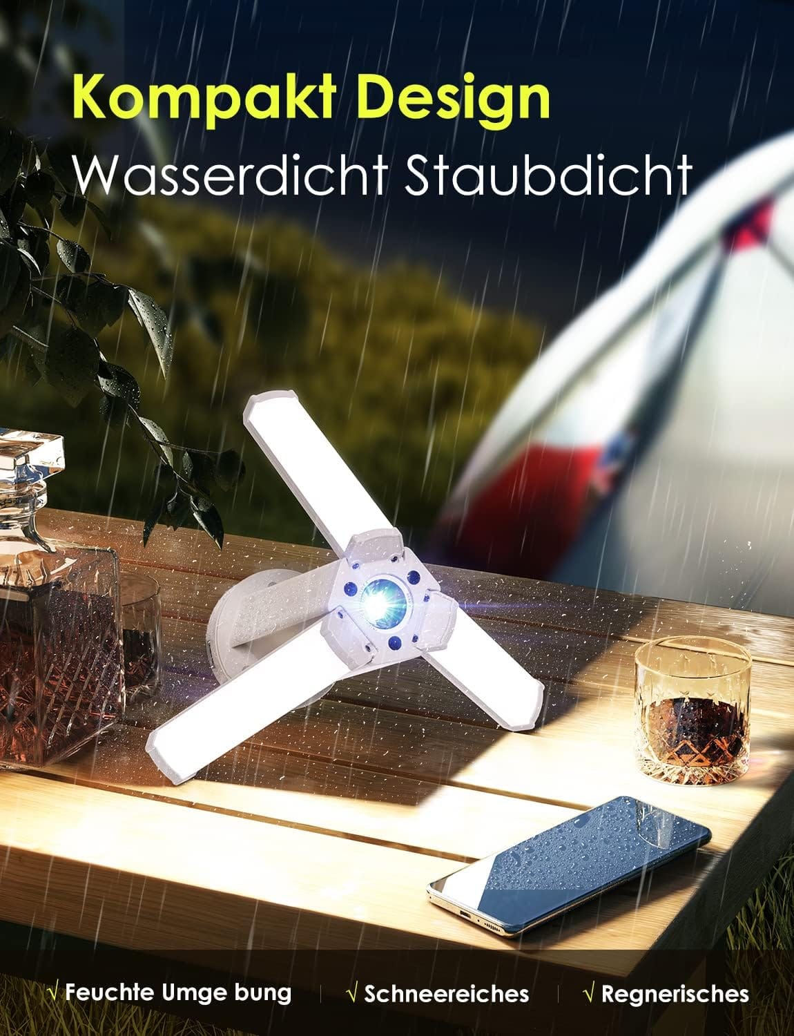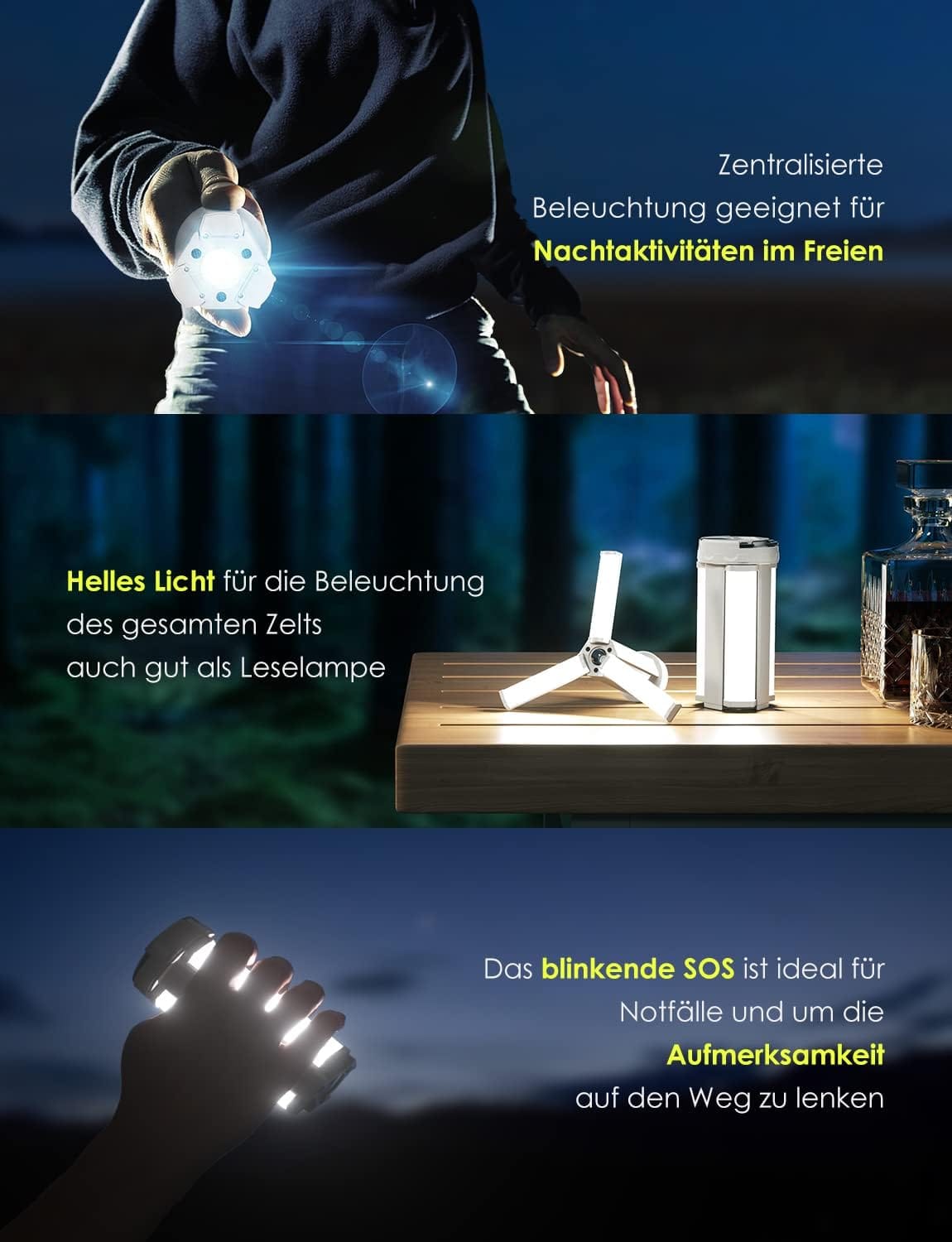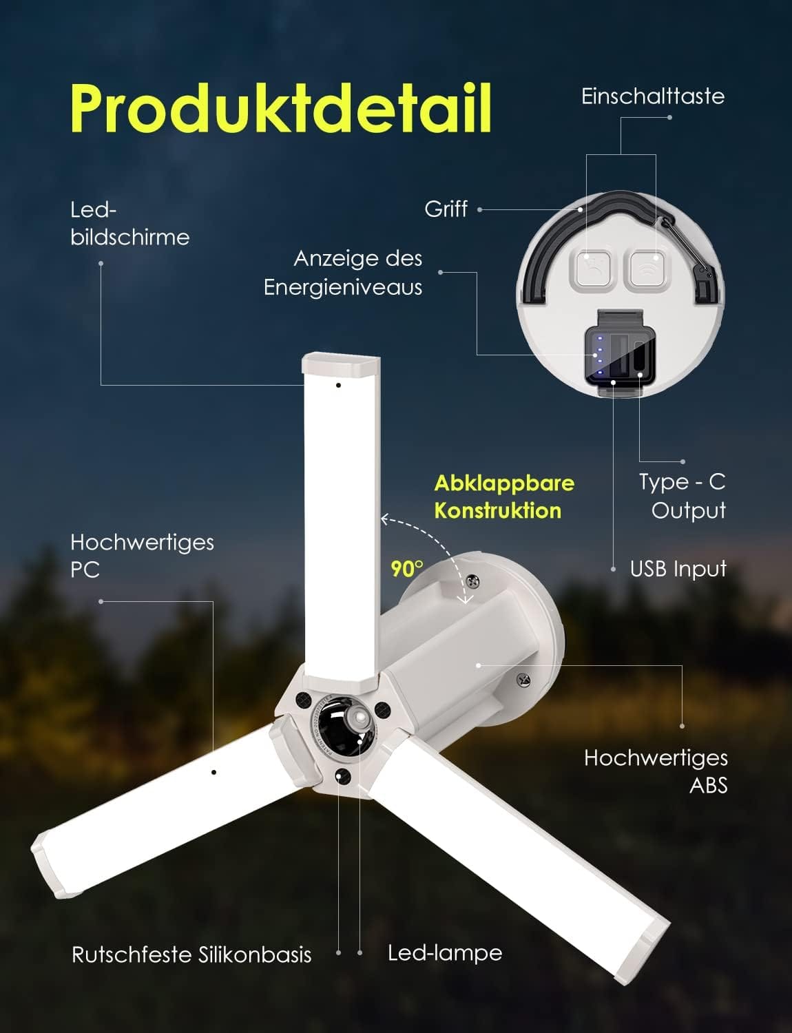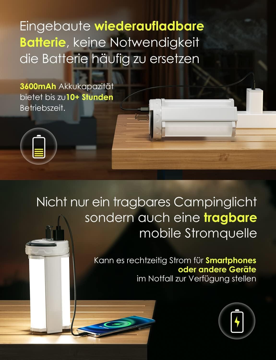 Φορητό πολυλειτουργικό φανάρι camping με μπαταρία 3600mAh, αναδιπλούμενα LED πάνελ και USB φόρτιση.