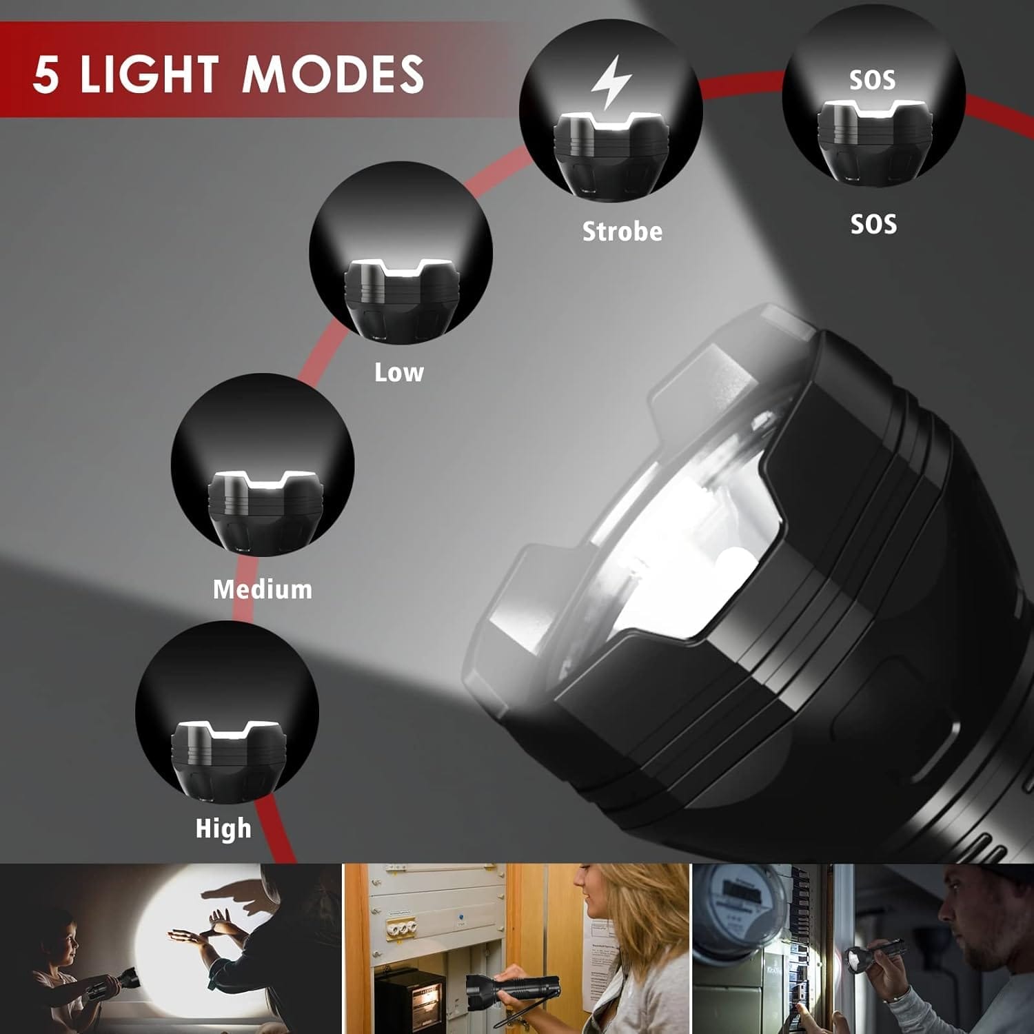 Ιδανικός φακός για το σπίτι: Η ποσότητα των 400 lumen είναι τεχνικά αρκετή για κάμπινγκ και οικιακή χρήση. Μία πλήρης φόρτιση είναι αρκετή για περισσότερους από 3 μήνες. Ειδική λειτουργία φωτισμού: Αυτός ο φακός διαθέτει 5 λειτουργίες φωτός – υψηλή, μεσαία, χαμηλή, στροβοσκοπική και SOS – οι οποίες είναι προσβάσιμες με το πάτημα του κουμπιού στον λαμπτήρα. Ο χρόνος λειτουργίας είναι πάνω από 8 ώρες.