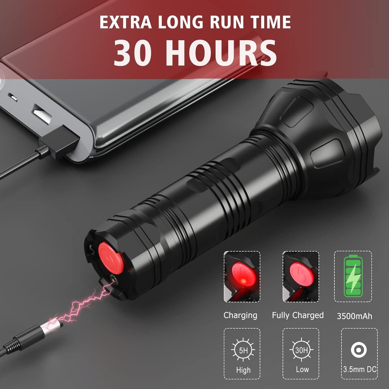 Επαναφορτιζόμενος φακός LED: Ο επαναφορτιζόμενος φακός διαθέτει ενσωματωμένη μπαταρία 3500 mAh (μη αφαιρούμενη), εξοικονομώντας δεκάδες ευρώ από το κόστος μπαταριών κάθε χρόνο.