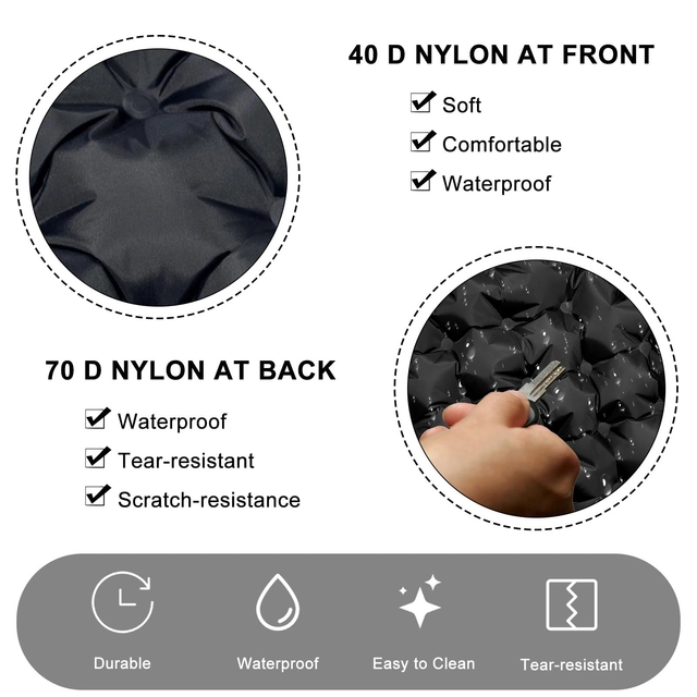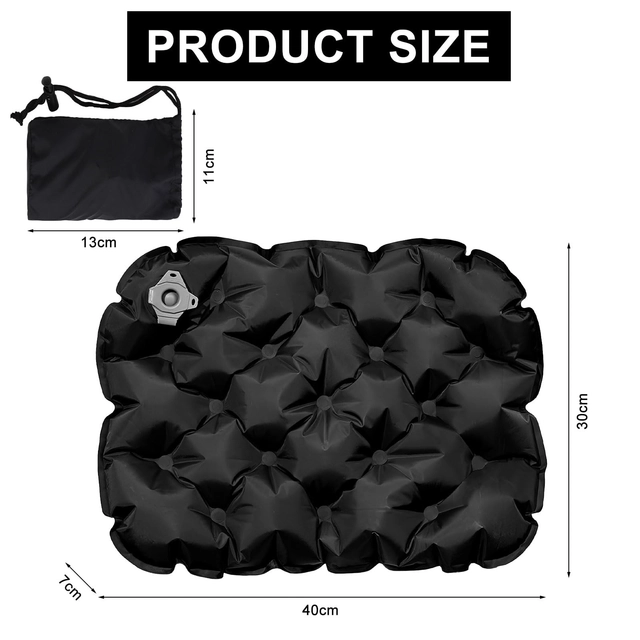 【Φορητή ευκολία】: Το μικρό μας μαξιλάρι καθίσματος είναι συμπαγές και ελαφρύ και μπορεί να χωρέσει σε μια τσέπη μεγέθους 11 x 8 cm, κάνοντάς το εύκολο στη μεταφορά και προσφέροντας άνεση εν κινήσει. Όταν φουσκώνει, επεκτείνεται σε διαστάσεις 48,5 x 37 cm και προσφέρει επαρκή χώρο καθίσματος.