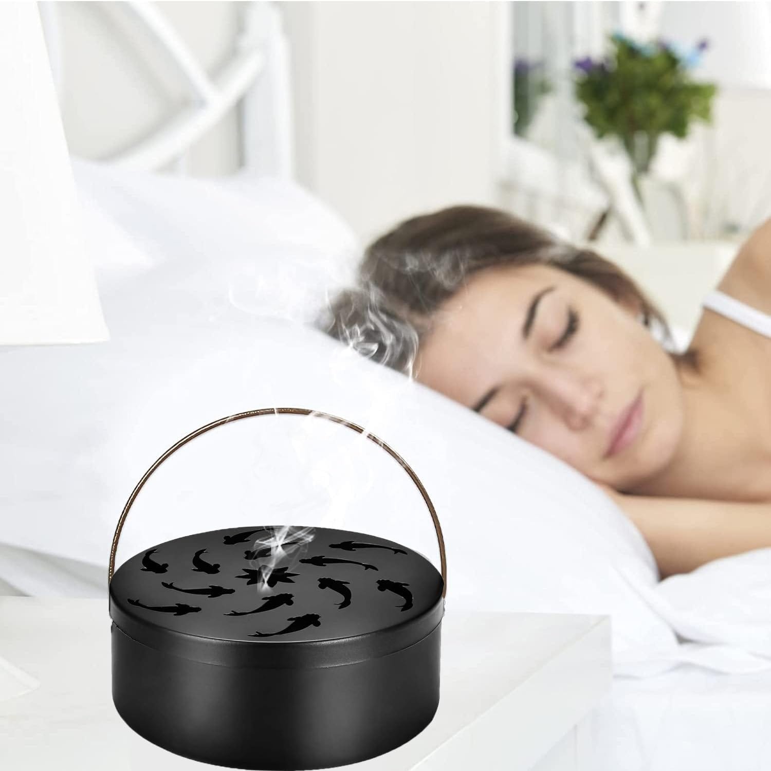 Η φορητή μεταλλική αντικουνουπική βάση για φιδάκι είναι ανθεκτική στη θερμότητα και στη διάβρωση, κατασκευασμένη από υψηλής ποιότητας μέταλλο. Ο κοίλος σχεδιασμός καπακιού διανέμει ομοιόμορφα το άρωμα, απωθώντας γρήγορα κουνούπια και έντομα, ενώ προστατεύει από τυχόν ανάφλεξη.