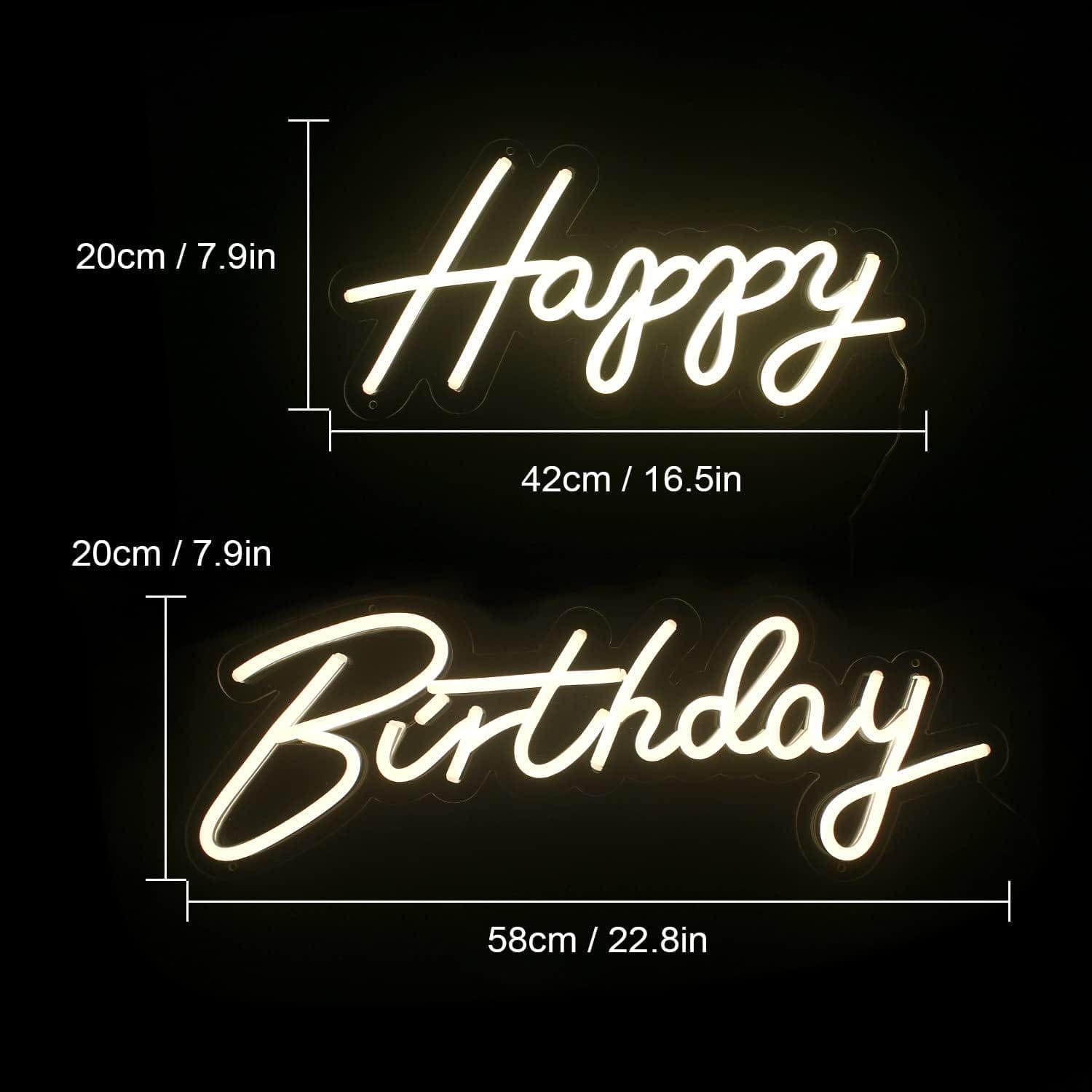 Happy 16,5″L*7,9″W, Γενέθλια 22,8″L*7,9″. Η μεγάλη φωτεινή πινακίδα χαρούμενων γενεθλίων μπορεί να είναι η τέλεια επιλογή για κάθε ηλικία. Φωτεινό αλλά όχι εκθαμβωτικό, κατάλληλο για πάρτι, πάρτι αρραβώνων, πάρτι γενεθλίων, γάμος, διακόσμηση σπιτιού, τοίχος κρεβατοκάμαρας, γραφείο, μπαρ, καφετέρια, μπύρα, παράθυρο.