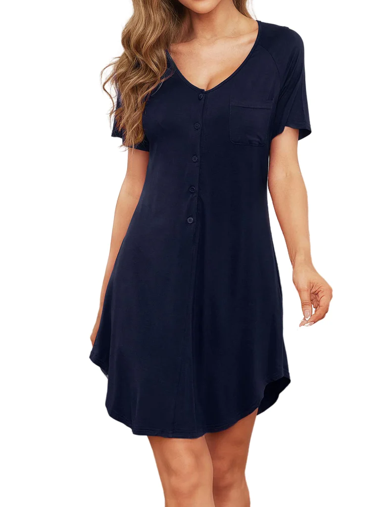 Γυναικείο νυχτικό με κοντό μανίκι: Τα γυναικεία νυχτικά έχουν V λαιμόκοψη. Το φόρεμα ύπνου είναι κοντομάνικο και μέχρι το γόνατο. Είναι ιδιαίτερα κατάλληλο για το καλοκαίρι.