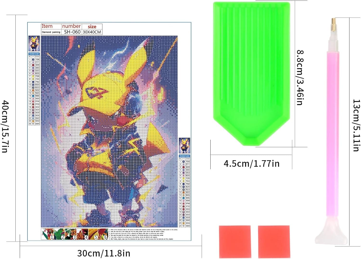 “Η φιγούρα κινουμένων σχεδίων Pikachu  5D είναι φτιαγμένη από premium υλικό για μακροχρόνια αντοχή. Ο καμβάς τέχνης του κιτ ζωγραφικής με διαμάντια DIY είναι περιβαλλοντικά φιλικός, με υψηλή διαφάνεια, ανάγλυφο και ανθεκτικό στο χρόνο.”