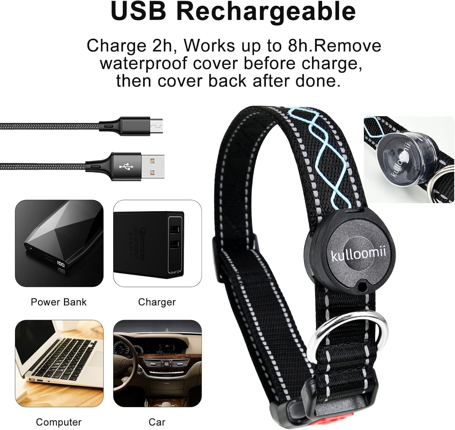 Επαναφορτιζόμενο USB & Αδιάβροχο – Χρειάζεται 2 ώρες φόρτιση για έως 8 ώρες λειτουργίας. Το κολάρο είναι αδιάβροχο, λειτουργεί ακόμα και σε βροχή ή χιόνι. Σημείωση: Τοποθετήστε ξανά το κάλυμμα ανθεκτικό στο νερό μετά τη φόρτιση για να διατηρήσετε την αδιάβροχη ιδιότητα.