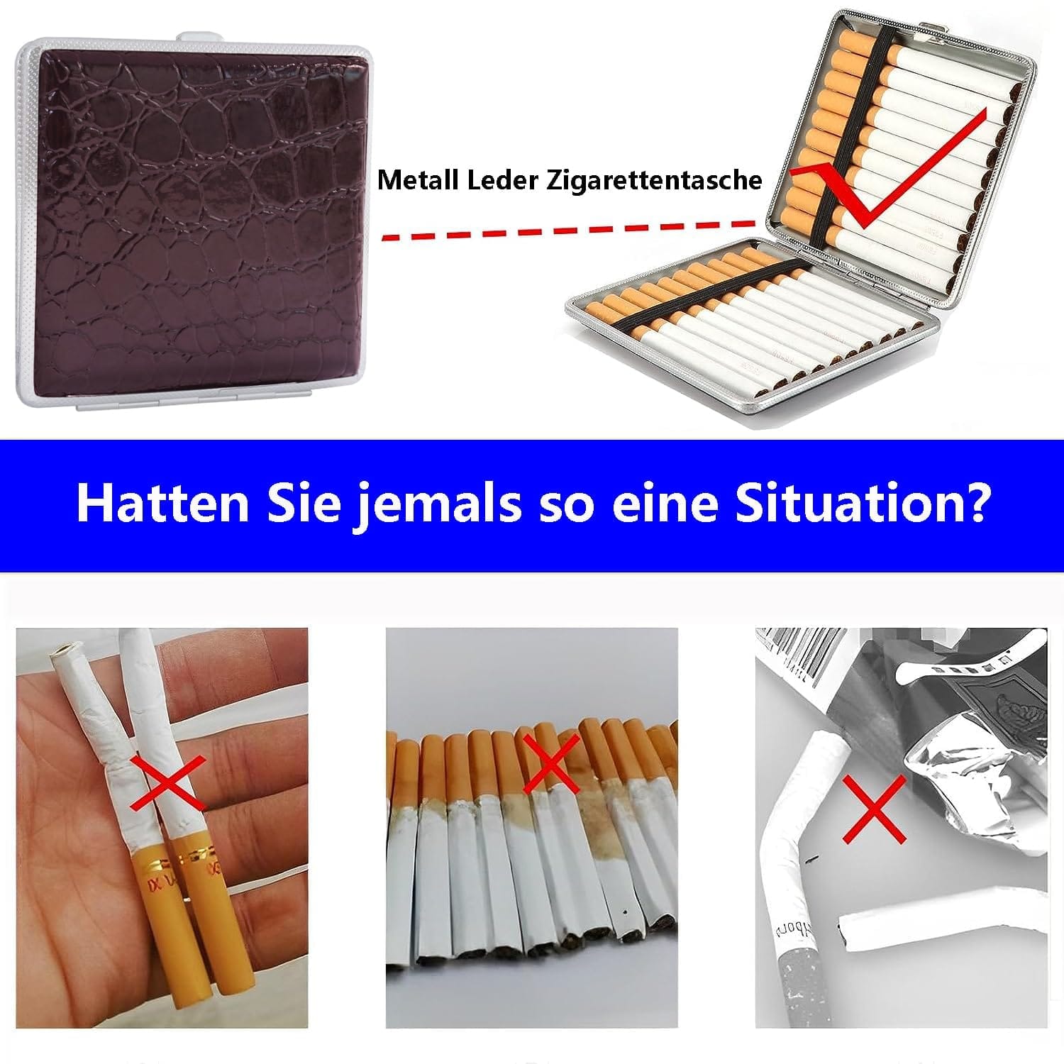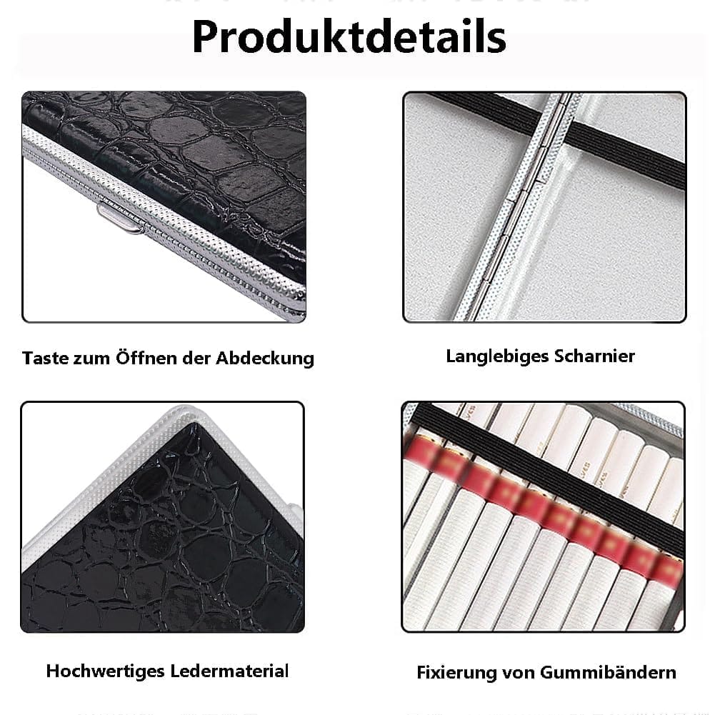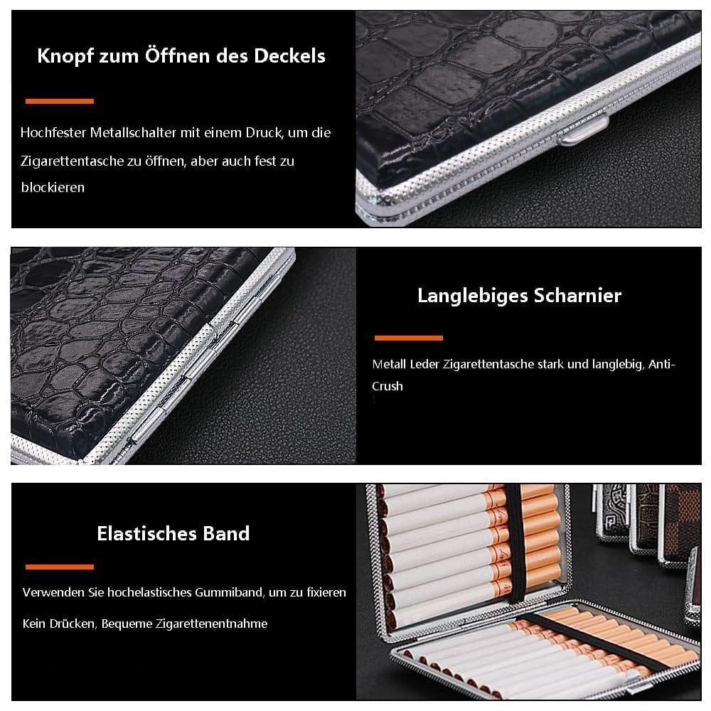 Κομψά αξεσουάρ τσιγάρων: Η ρετρό ταμπακιέρα μας είναι διαθέσιμη σε διάφορα χρώματα. Είναι κατασκευασμένη από δέρμα και μέταλλο, με μεταλλικό πλαίσιο που είναι ανθεκτικό στη φθορά και προσφέρει πλήρη προστασία. Κρατά τα τσιγάρα άθικτα και τα προστατεύει από την υγρασία ή το σπάσιμο.