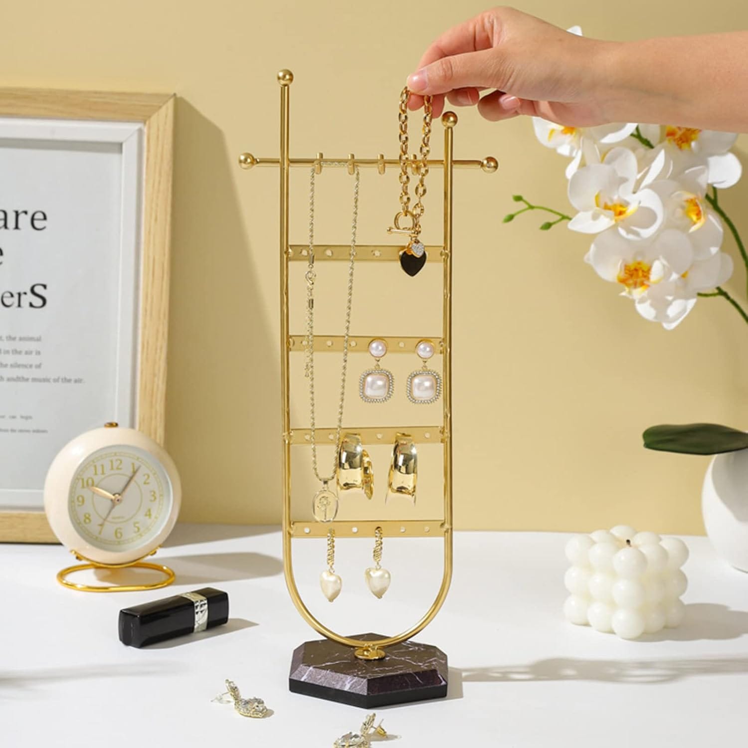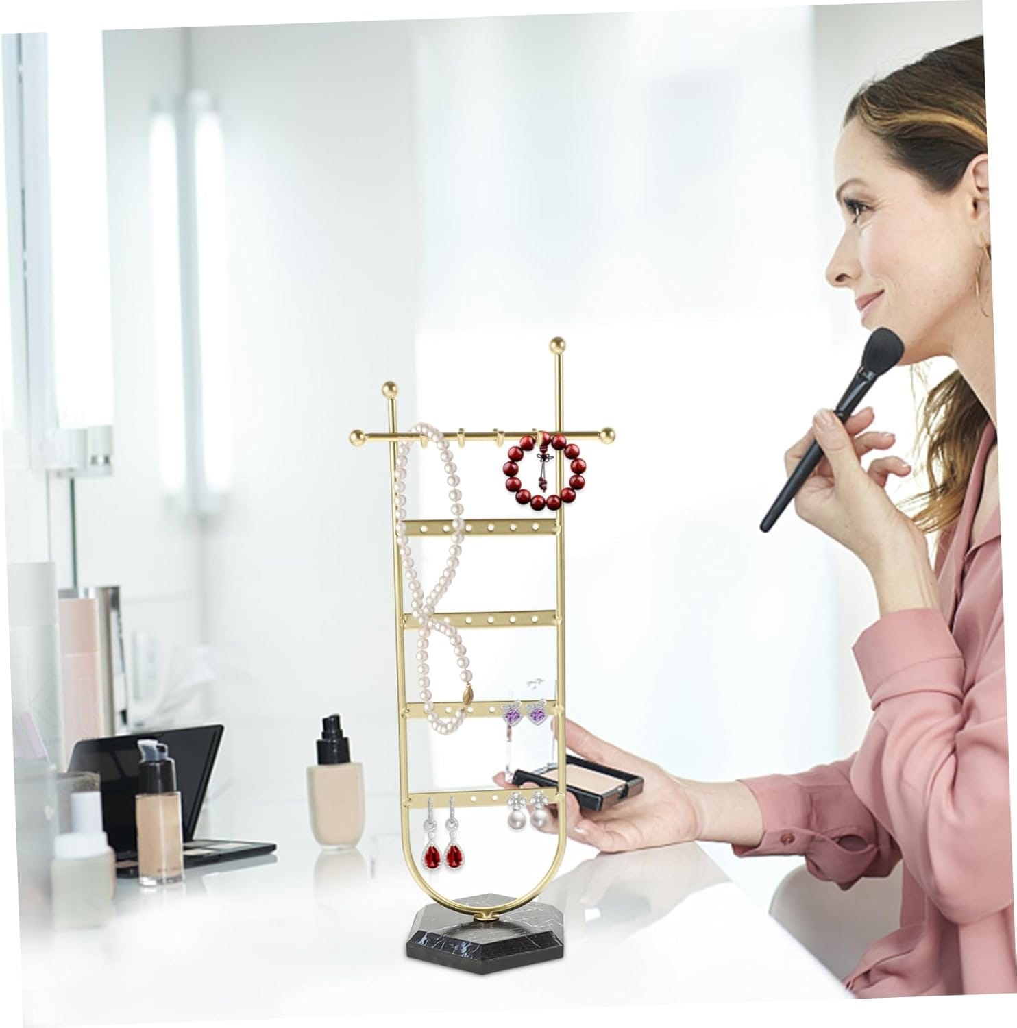 Σταντ Κοσμημάτων – : Με μεγάλη χωρητικότητα και πολλαπλά στρώματα, αυτή η θήκη χωράει διάφορα κοσμήματα. Κατασκευασμένη από ανθεκτικό σιδηρούχο υλικό, προσφέρει μακροχρόνια χρήση και είναι ιδανική για προμήθειες σπιτιού.