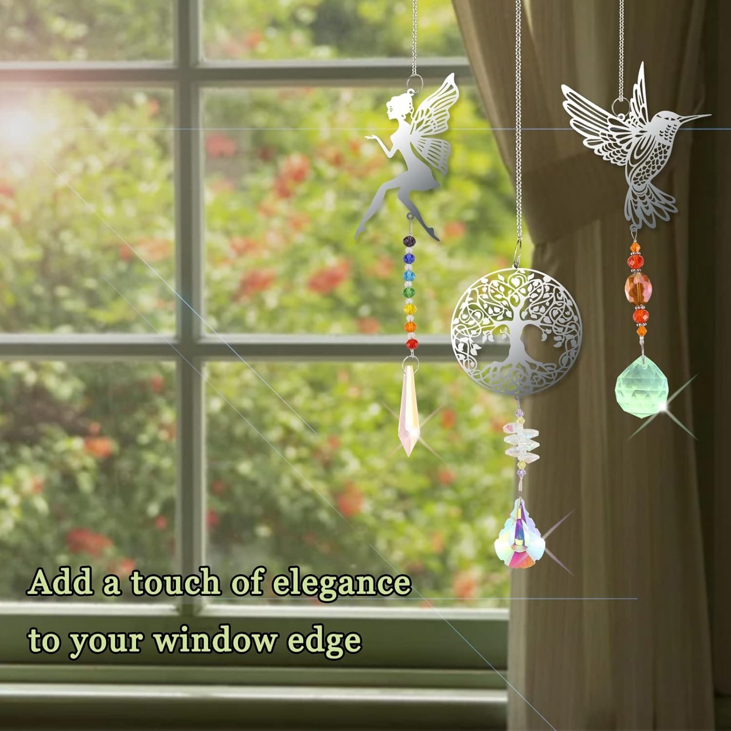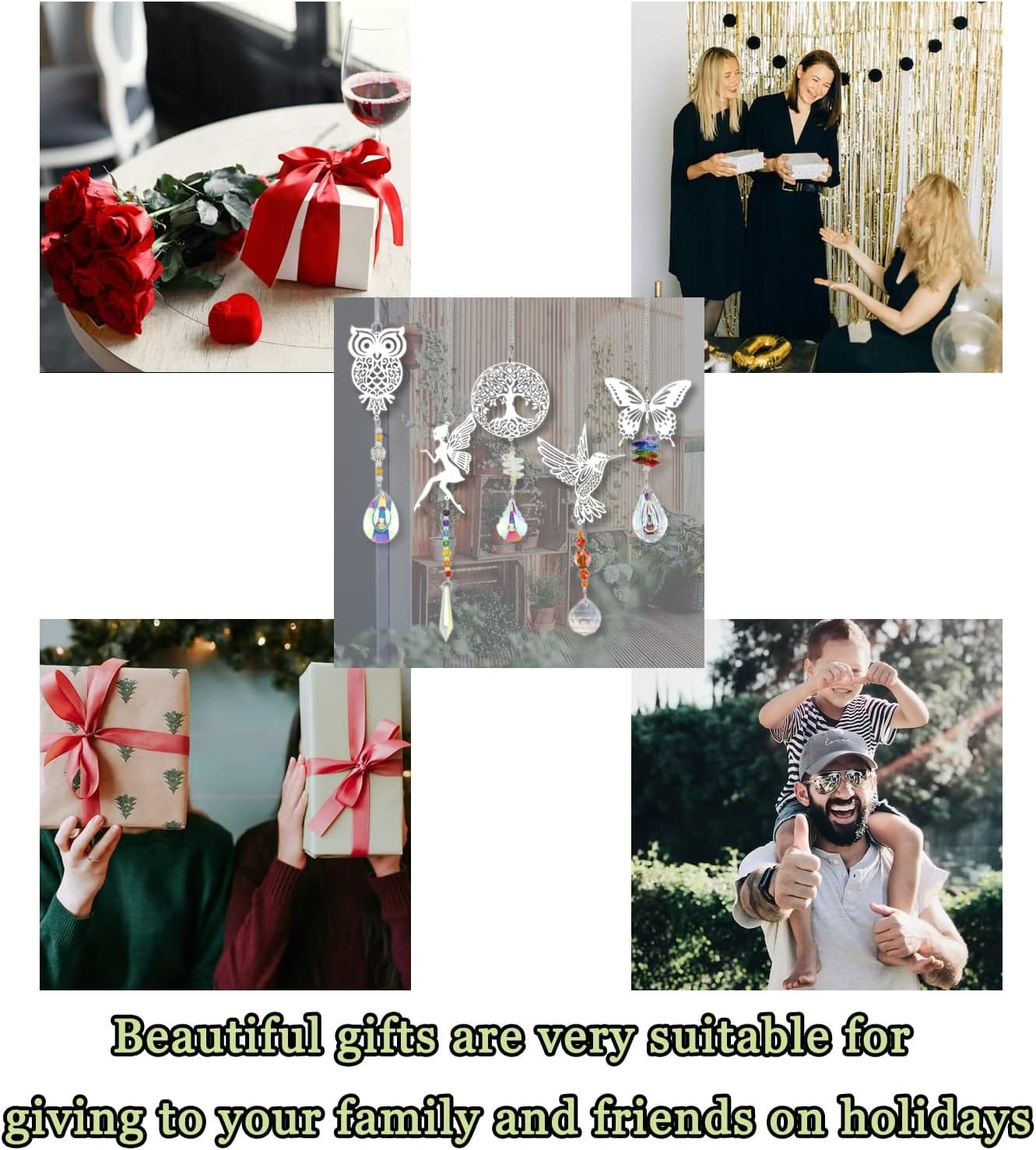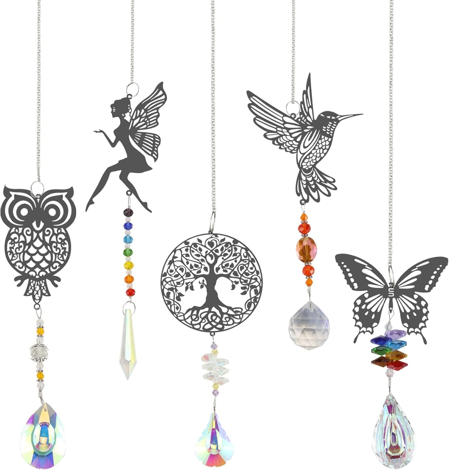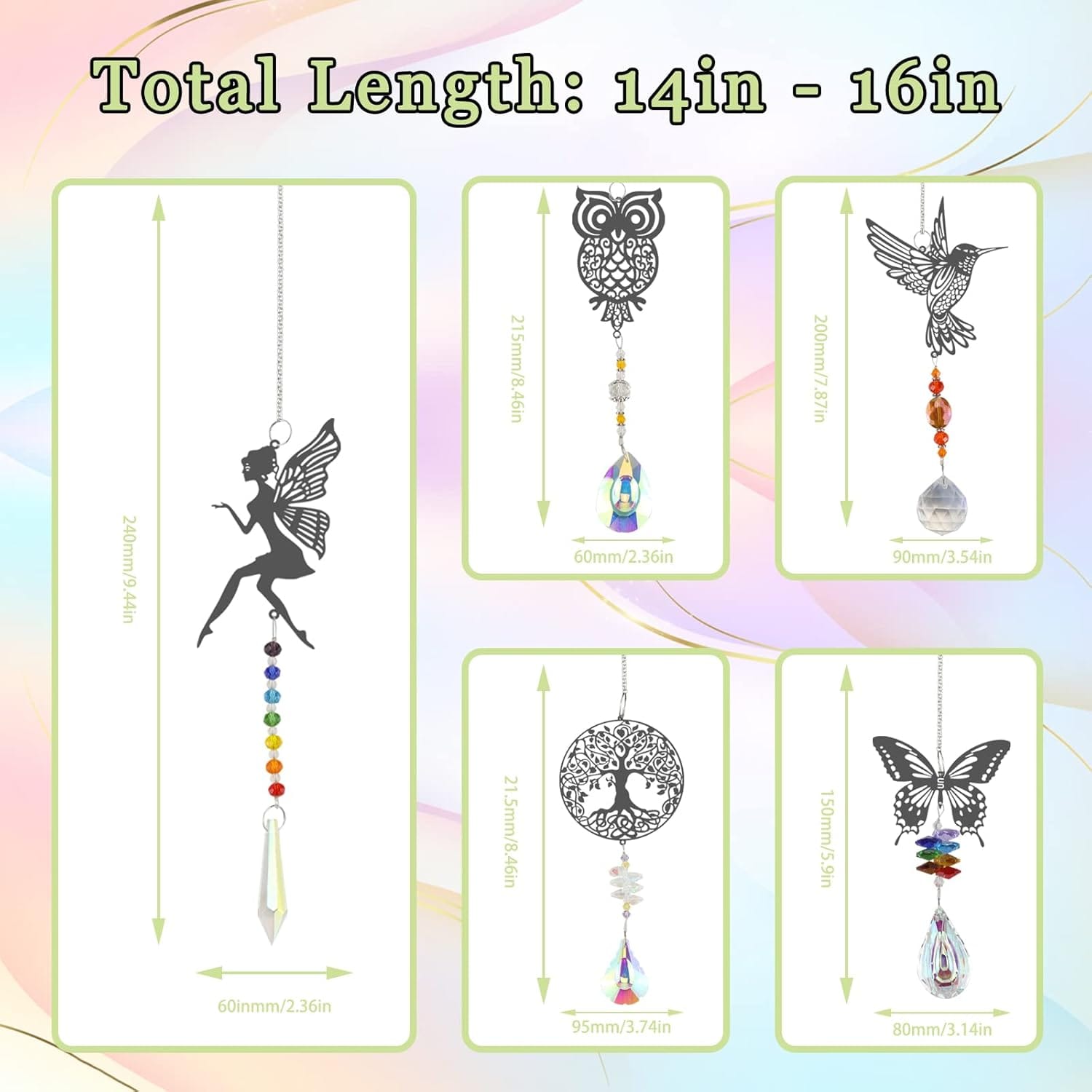 Μοναδικός Σχεδιασμός: Το σετ περιλαμβάνει 5 μοναδικά πολύχρωμα κρύσταλλα με σχέδια κολιβρίου, πεταλούδας, δέντρου της ζωής, κουκουβάγιας και νεράιδας. Διαφορετικά χρώματα και στυλ που καλύπτουν κάθε διακοσμητική ανάγκη.