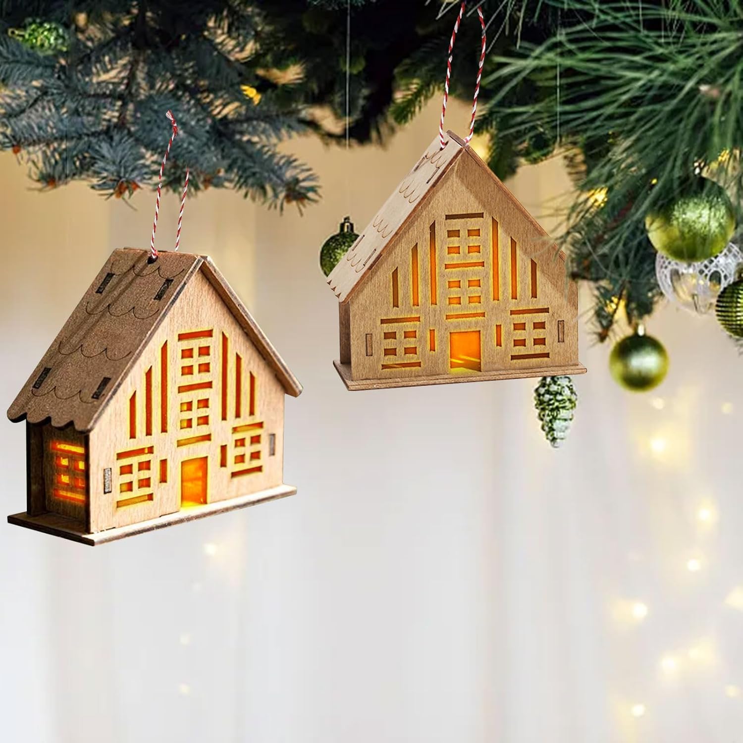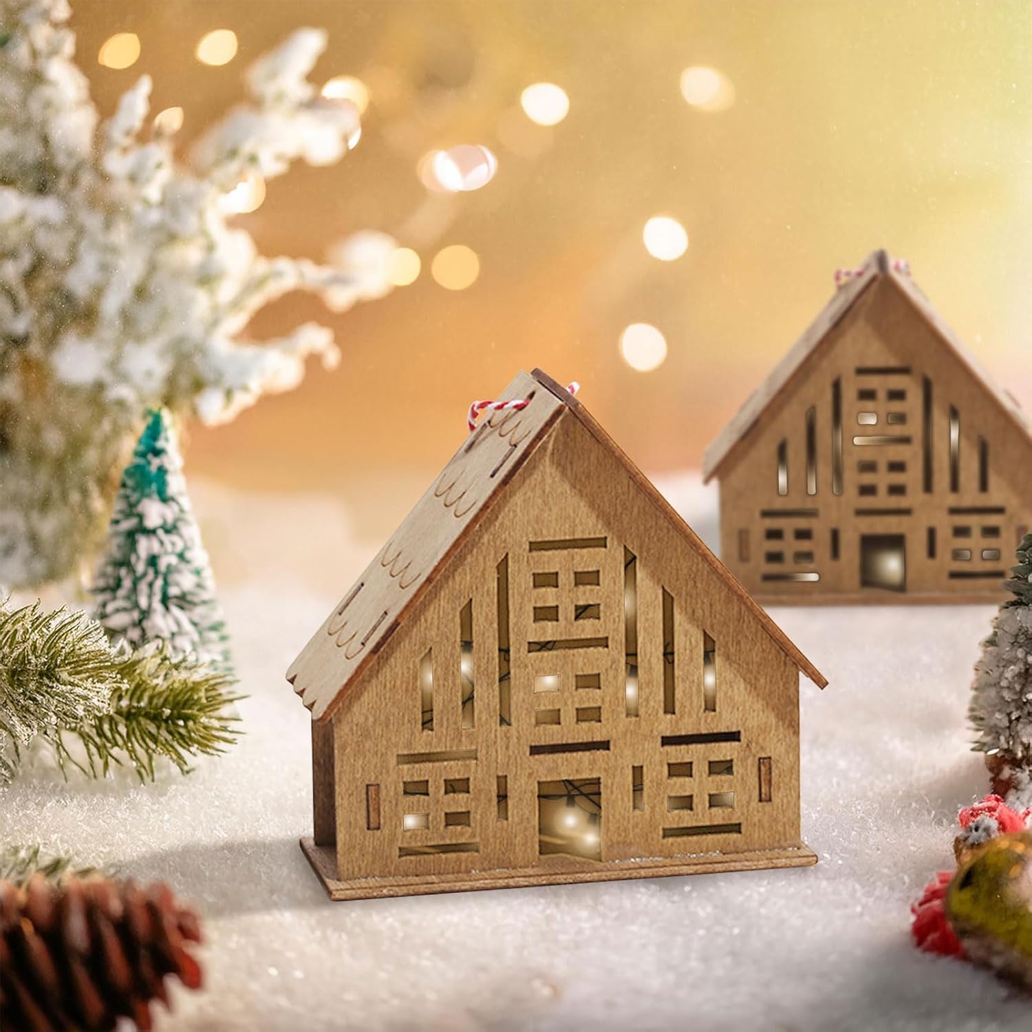 Ξύλινα Χριστουγεννιάτικα Σπιτάκια – Στολίδια Διακοσμητικά 2 τεμ