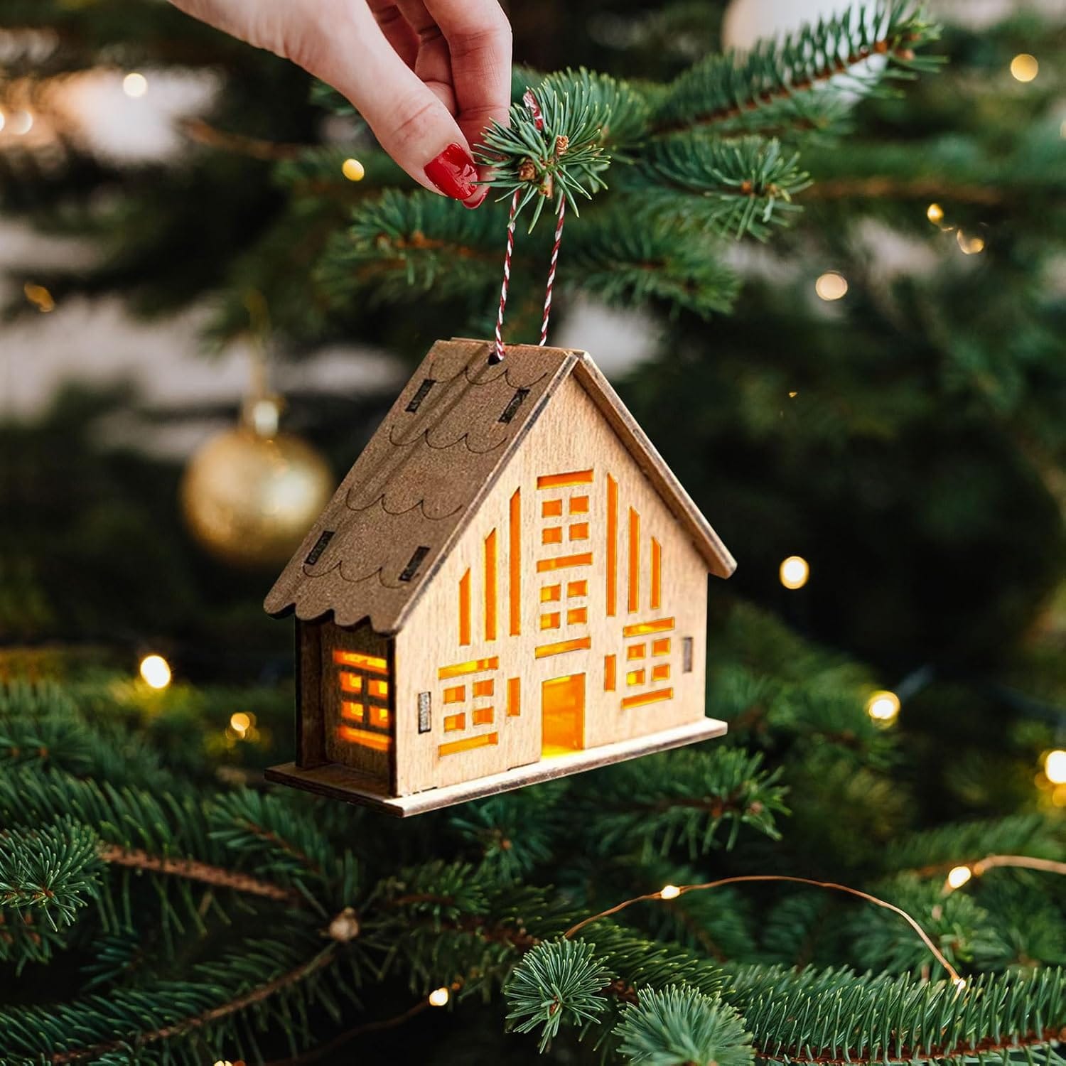 Μέγεθος: Κάθε χριστουγεννιάτικο σπιτάκι από φυσικό ξύλο, πρώτες ύλες υψηλής ποιότητας, πολύ ελαφρύ. Διαστάσεις: 10 x 9 x 4 cm. Ιδανικό για διακόσμηση Χριστουγεννιάτικου χωριού ή χριστουγεννιάτικων δέντρων.