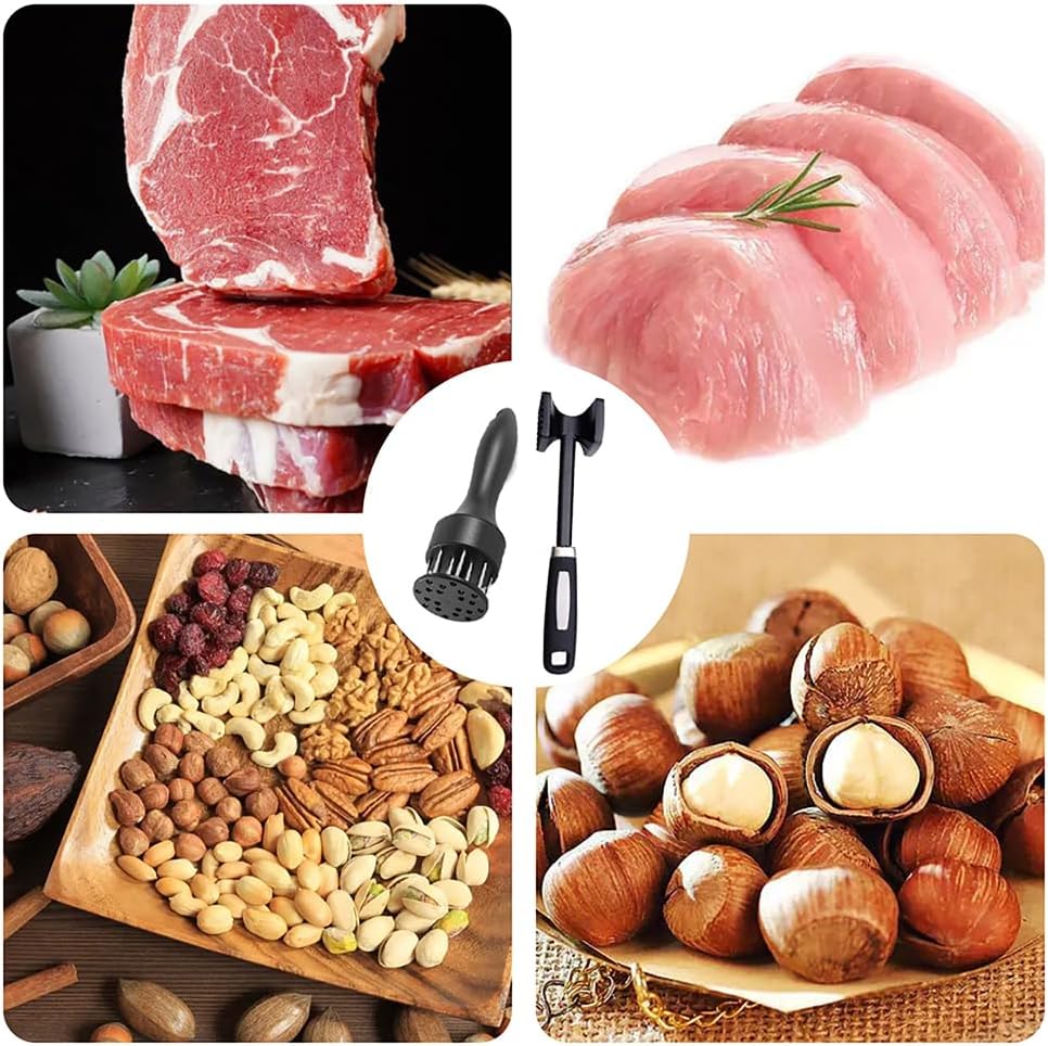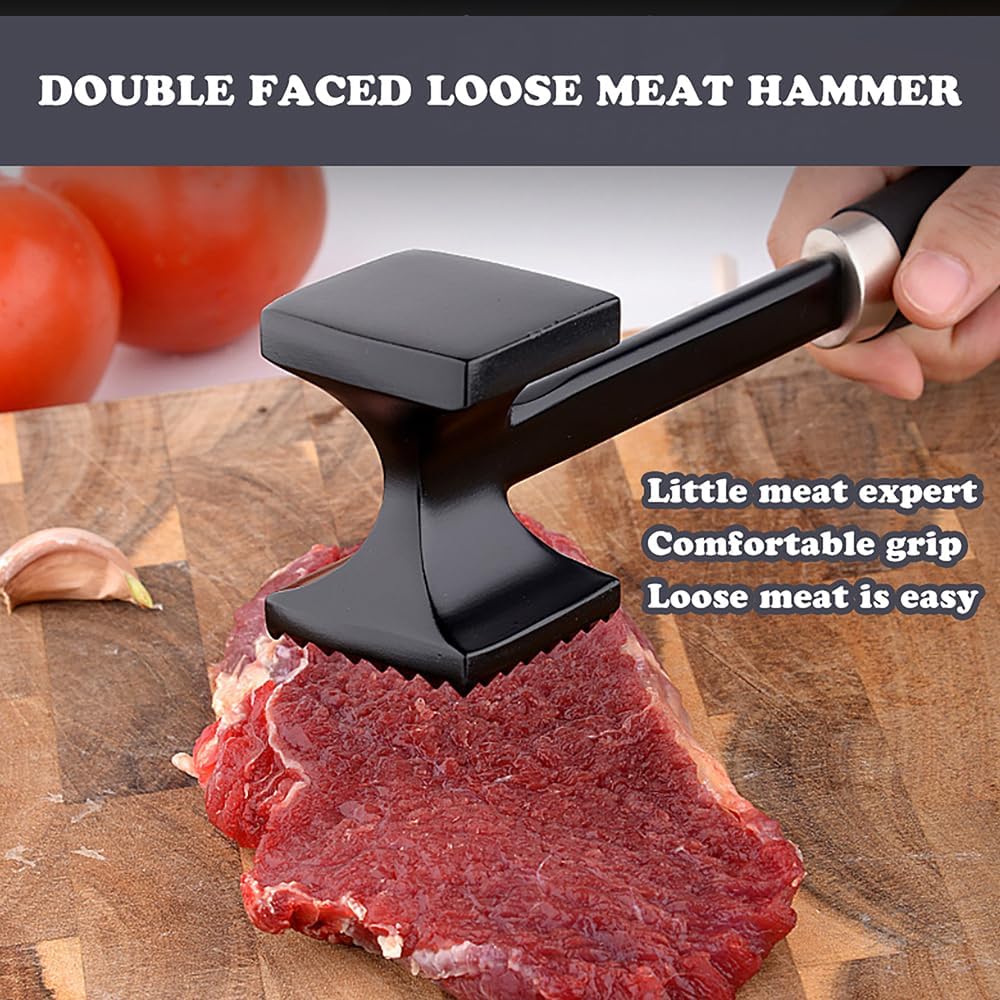 -Ευέλικτο βοήθημα κουζίνας: Το σφυρί για κρέας σας βοηθά να ετοιμάσετε νόστιμα, μπριζόλα, χοιρινό, κοτόπουλο, γαλοπούλα, αρνί και πάπια. Μπορείτε επίσης να συνθλίψετε το σκόρδο, να συνθλίψετε πάγο και να σπάσετε κέλυφος καρυδιού και καβουριών. Διαθέτει ενσωματωμένη θηλιά για εύκολη αποθήκευση και ελαφριά κεφαλή αλουμινίου για χρήση χωρίς άγχος.