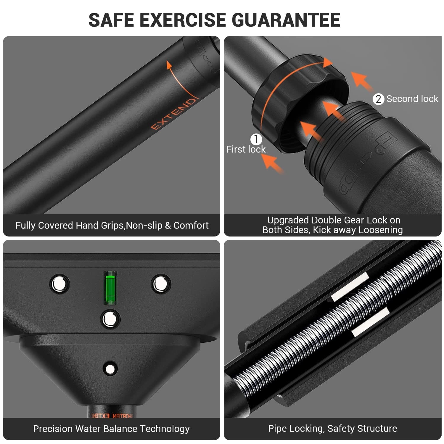 【Αναβαθμισμένο σύστημα μηχανικής κλειδαριάς】: Η ασφάλεια είναι μεγάλη υπόθεση στη Sportneer, γι’ αυτό διασφαλίζουμε την ασφαλή χρήση αυτής της ράβδου έλξης για χρήστες όλων των ηλικιών, από εφήβους έως ηλικιωμένους. Η κρεμαστή ράβδος διαθέτει αποκλειστική, νέα περιστρεφόμενη 360° κλειδαριά διπλού γραναζιού και στα δύο άκρα για να προστατεύει τη ράβδο από χαλάρωση. Αυτή η μπάρα Sportneer έχει περάσει μια σειρά δοκιμών έρευνας και ανάπτυξης και είναι πιστοποιημένη, ασφαλέστερη και ισχυρότερη από άλλους παρόμοιους εξοπλισμούς.