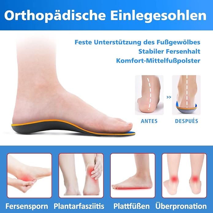 Άνετοι πάτοι: Το σχήμα στήριξης της καμάρας προσαρμόζεται τέλεια στο περίγραμμα της καμάρας του ποδιού και κατανέμει την πίεση στο πόδι. Ο στιβαρός επίδεσμος φτέρνας σταθεροποιεί το πόδι στη σωστή θέση και ευθυγραμμίζει σωστά το σώμα σας και διορθώνει τις κακές στάσεις περπατήματος και ορθοστασίας.