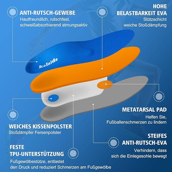 ΑΝΑΚΟΥΦΙΣΗ ΠΟΝΟΥ & ΑΝΕΣΗ: Οι ορθοπεδικοί πάτοι Kelaide ανακουφίζουν τον πόνο στα πόδια που προκαλούνται από πόνο στη φτέρνα/καμάρα, τα άκανθα πτέρνας, την πελματιαία απονευρωσίτιδα, τον υπτιασμό, τον υπερπρηνισμό και την πλατυποδία.