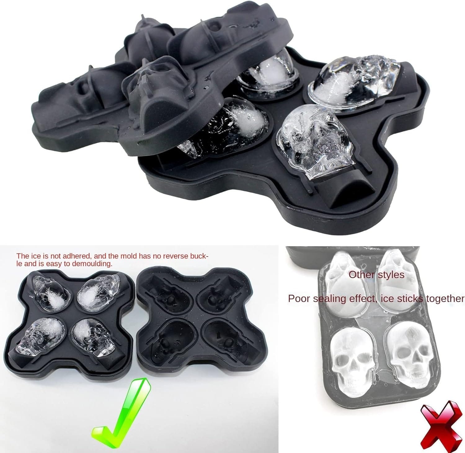 Εύκολη απελευθέρωση: Το κάτω μέρος της παγοθήκης σιλικόνης είναι μαλακό και ανθεκτικό, η επιφάνεια είναι λεία και καθαρή, μπορείτε εύκολα να απελευθερώσετε την μπάλα πάγου πιέζοντας ή σφίγγοντας. Πατενταρισμένο σχέδιο αναβάθμισης, διαχωρίζει το παρακείμενο νερό παραγωγής πάγου, δεν κολλάει.