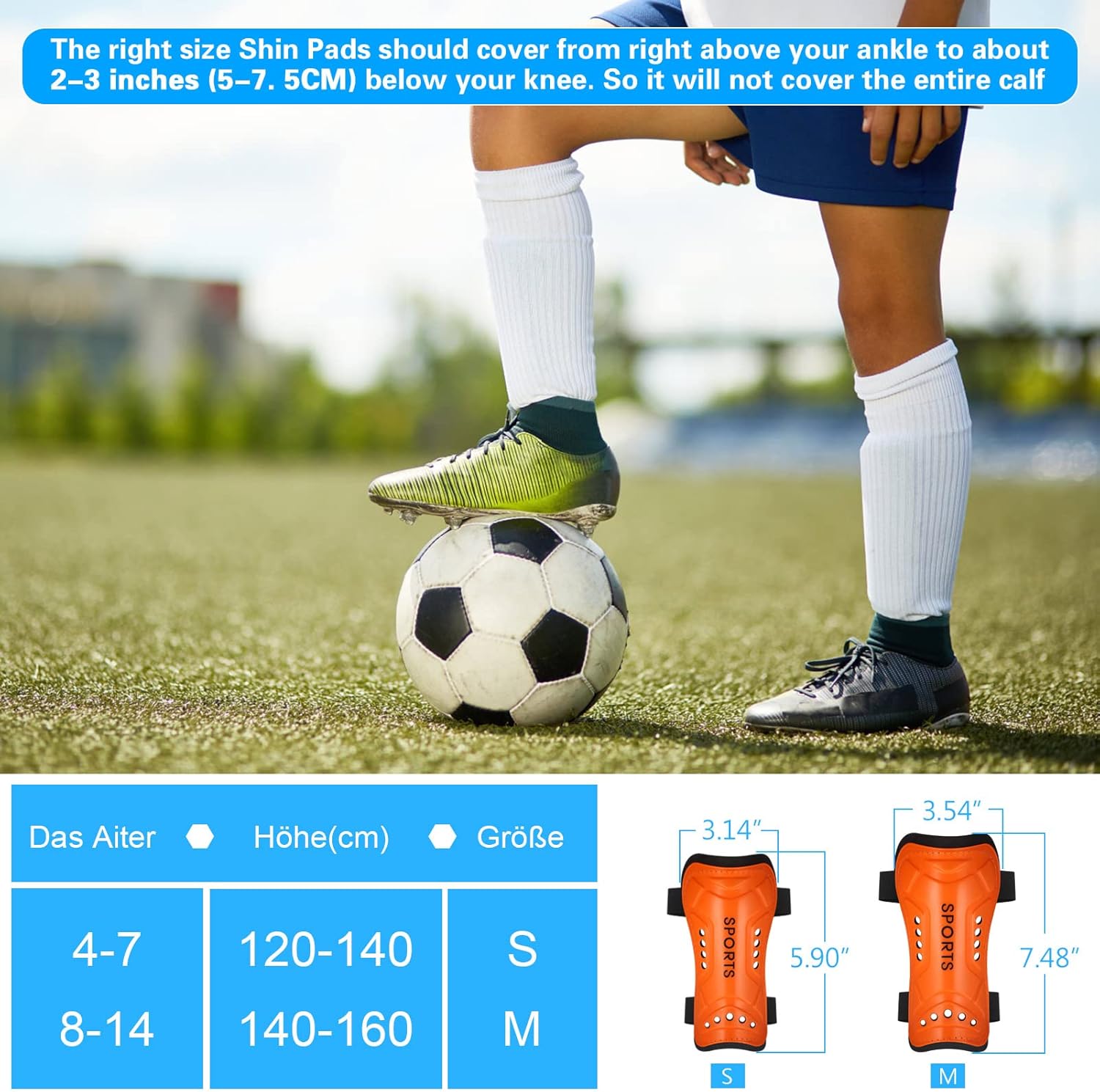 Κατάλληλο για παιδιά και εφήβους: Τα προστατευτικά κνήμης ποδοσφαίρου έχουν μήκος 15 εκ. και πλάτος 8 εκ., και χρησιμοποιούν ρυθμιζόμενο ελαστικό Velcro, κατάλληλα για ηλικίες 4-7 ετών.