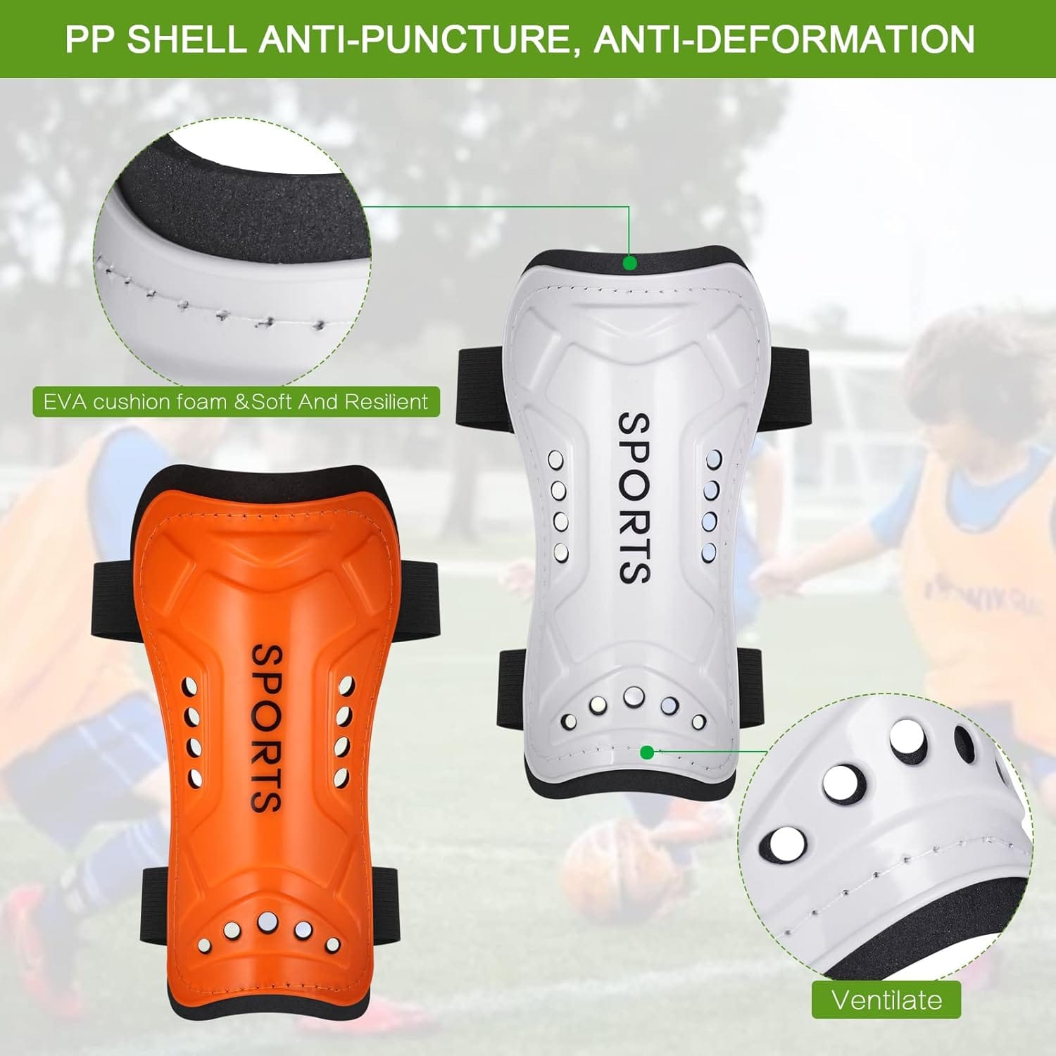 Υψηλή ποιότητα: Η επιφάνεια των προστατευτικών κνήμης είναι κατασκευασμένη από ανθεκτικό, ελαφρύ και παχύ υλικό PP, το οποίο είναι εξαιρετικά ανθεκτικό στην κρούση και άριστα κατασκευασμένο.