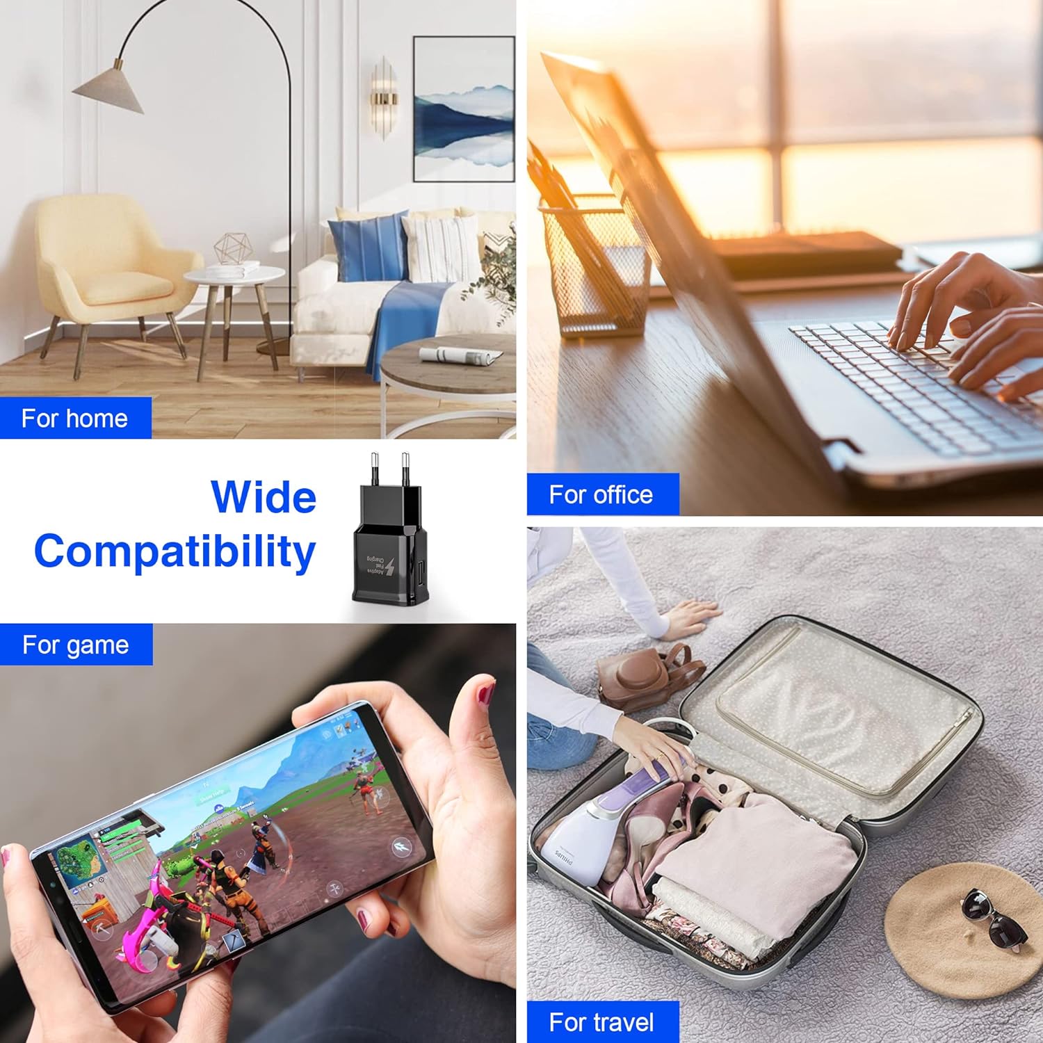 Γρήγορη φόρτιση συμβατή με: Samsung Galaxy S6 / S6 Edge / S6 Plus / S6 Active / S7 / S7 Edge / S7 Plus / S7 Active / S8 / S8 Plus / S8 Active / S9 / S9 Plus / S9+ / S10 / S10e / S10 Plus / S8 / S8+. KK/ Note 8 / Note 9, LG G5 G6 G7 V20 V30 ThinQ Plus και άλλοι γρήγοροι φορτιστές 3.0/2. 0 (QC 3.0/2. 0) Υποστηριζόμενες συσκευές. Συμβατό όχι μόνο με συσκευές Samsung, αλλά με όλες τις συσκευές που υποστηρίζουν προσαρμοζόμενη γρήγορη φόρτιση, ο φόρτισης (υποστηρίζει μέγιστη ισχύ 15 W).