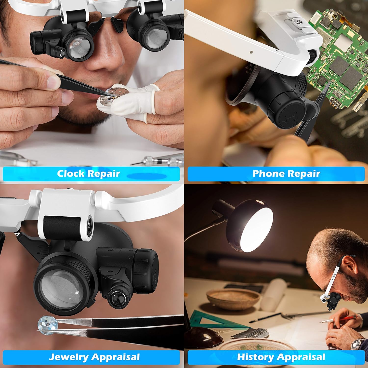 [Άλλο Πλεονέκτημα] 1) Με ρυθμιζόμενο φως LED, μπορεί να σας βοηθήσει να εργαστείτε σε συνθήκες χαμηλού φωτισμού. Το αφαιρούμενο στήριγμα και η κεφαλή εξασφαλίζουν σφιχτή εφαρμογή και μειώνουν την κούραση. 2) Όσο μεγαλύτερη είναι η μεγέθυνση, τόσο μικρότερη είναι η εστιακή απόσταση. Ρυθμίστε την εστιακή απόσταση από 20 έως 71 mm αλλάζοντας έναν άλλο φακό.