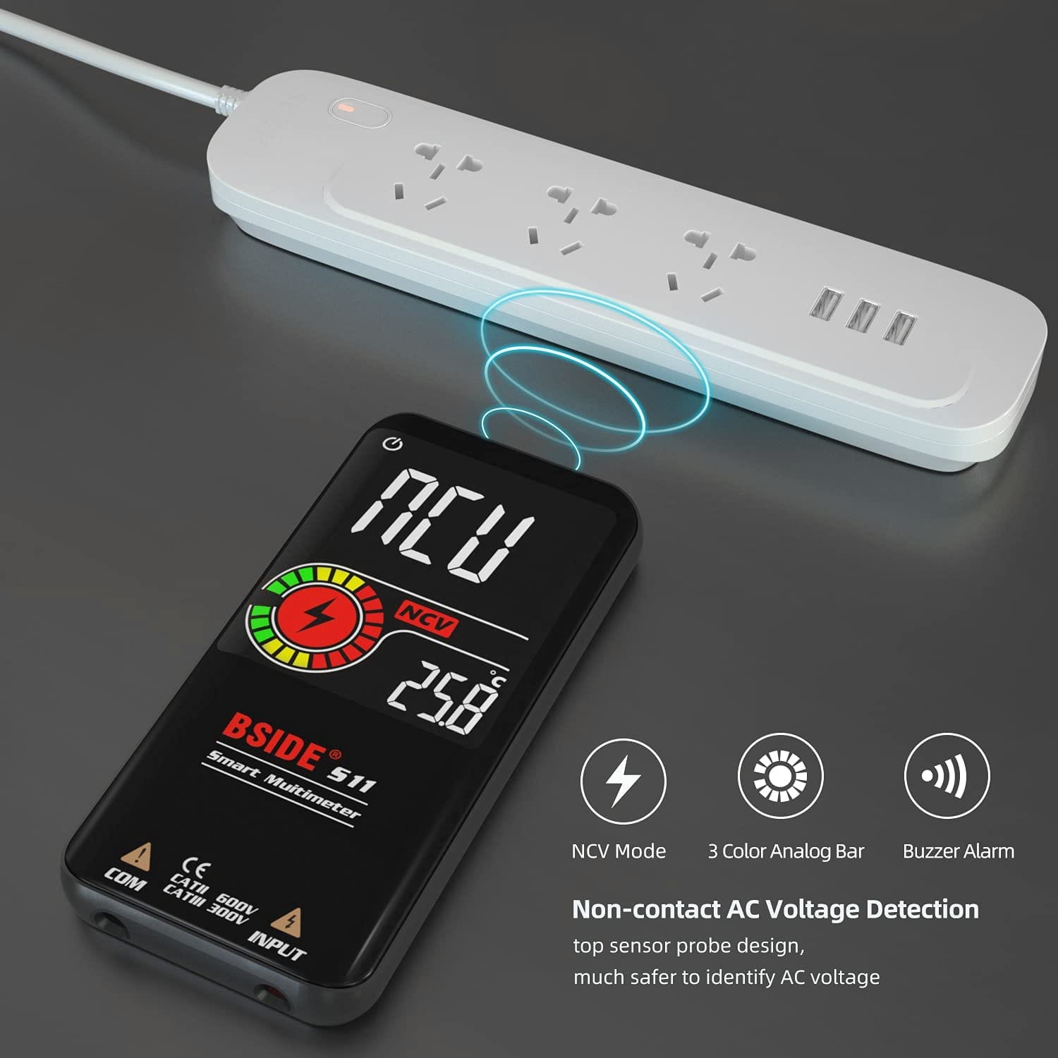 Πολυλειτουργικό: Το έξυπνο πολύμετρο μπορεί να μετρήσει την τάση AC/DC, την αντίσταση, την χωρητικότητα, τη συχνότητα και μπορεί να δοκιμάσει τη συνέχεια, τη δίοδο, τον κύκλο λειτουργίας, το NCV και το καλώδιο ρεύματος, καθώς και την ένδειξη θερμοκρασίας σε πραγματικό χρόνο. Με αυτό το έξυπνο ψηφιακό βολτόμετρο, μπορείτε να λύσετε οικιακά, βιομηχανικά, ηλεκτρικά προβλήματα οχημάτων.