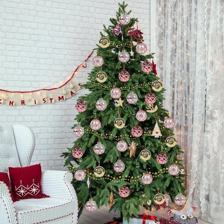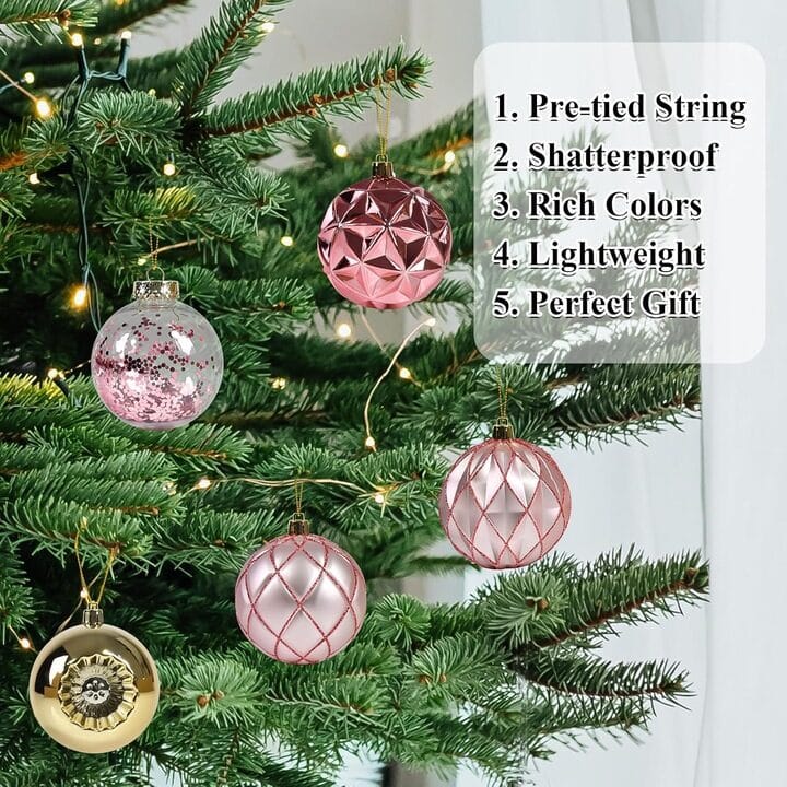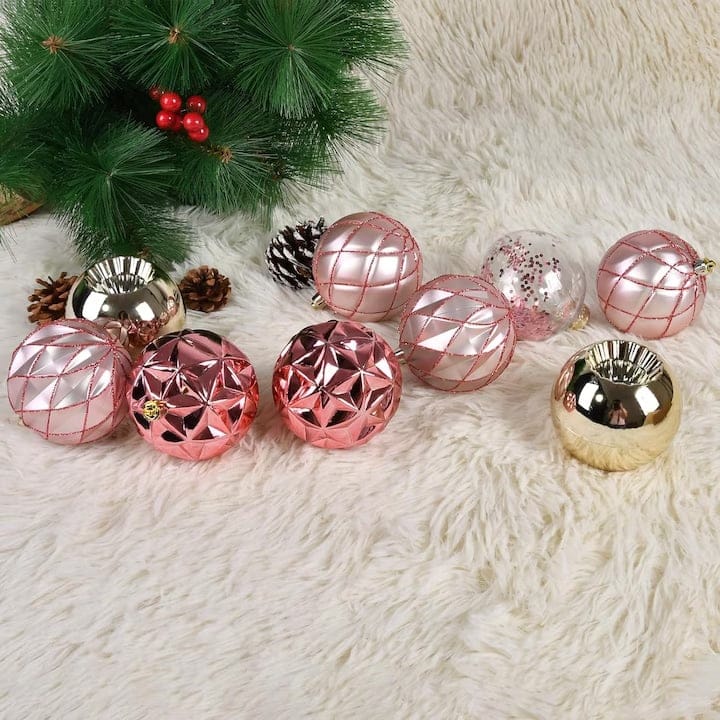 Σετ 9 Κρεμαστές Χριστουγεννιάτικες Μπάλες 8εκ – Ροζ & Χρυσό