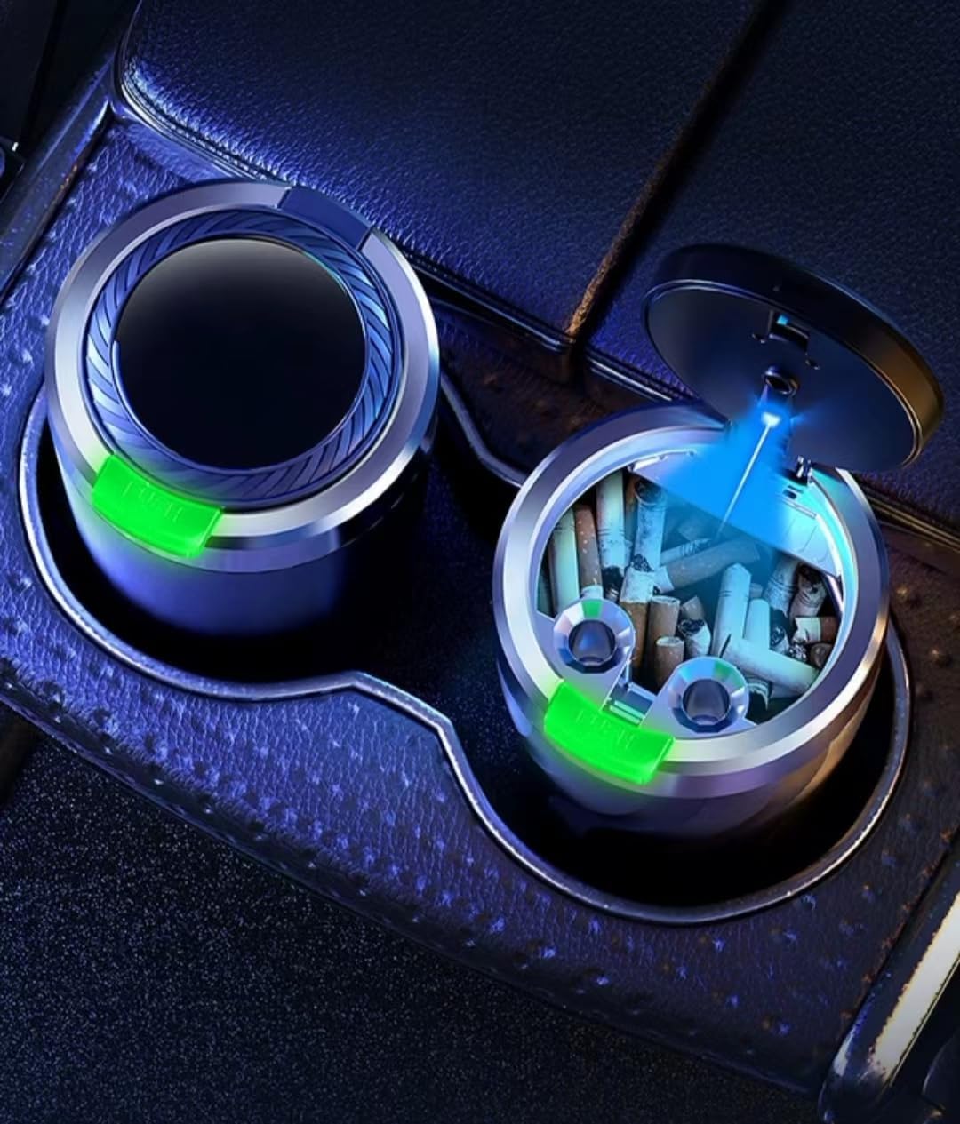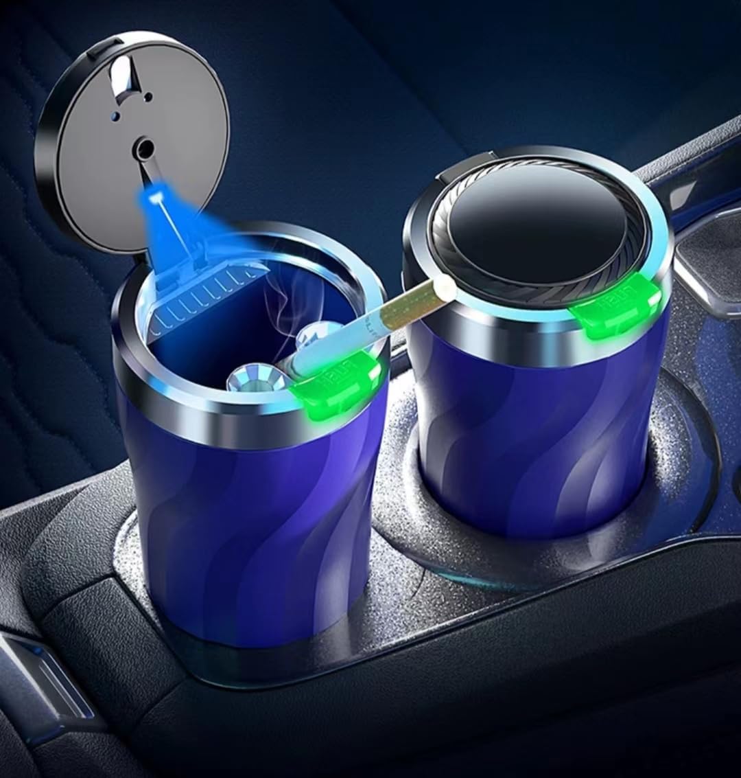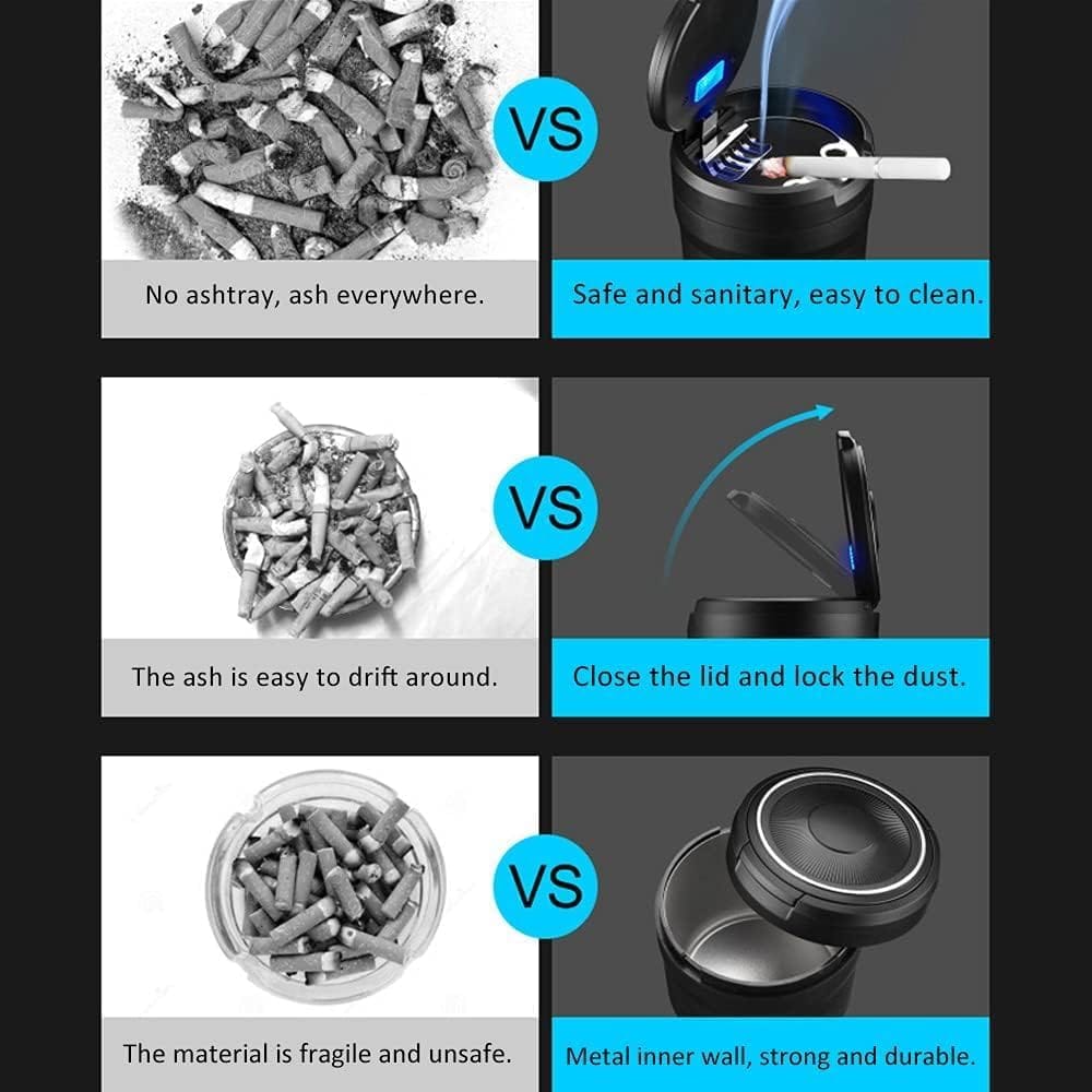 【LED φωτισμός】 Το τασάκι διαθέτει ενσωματωμένο μπλε LED φως που ανάβει αυτόματα όταν ανοίγει το καπάκι, βελτιώνοντας την ορατότητα στο σκοτάδι. Προσθέτει επίσης μια κομψή αισθητική πινελιά στο εσωτερικό του αυτοκινήτου σας.