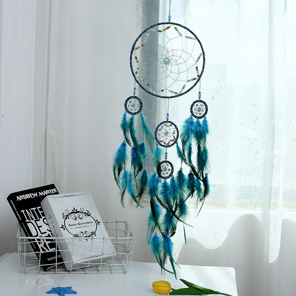 Όμορφη διακόσμηση σπιτιού: η ονειροπαγίδα με μπλε φτερά θα κάνει το σπίτι σας να λάμψει και θα τραβήξει τα βλέμματα. Το παιδικό δωμάτιο ονειροπαγίδα οδηγεί τους ανθρώπους που κοιμούνται μέσα από την ονειροπαγίδα σε όμορφα όνειρα. Αντιπροσωπεύει την ευλογία της αγάπης και τις καλύτερες ευχές.