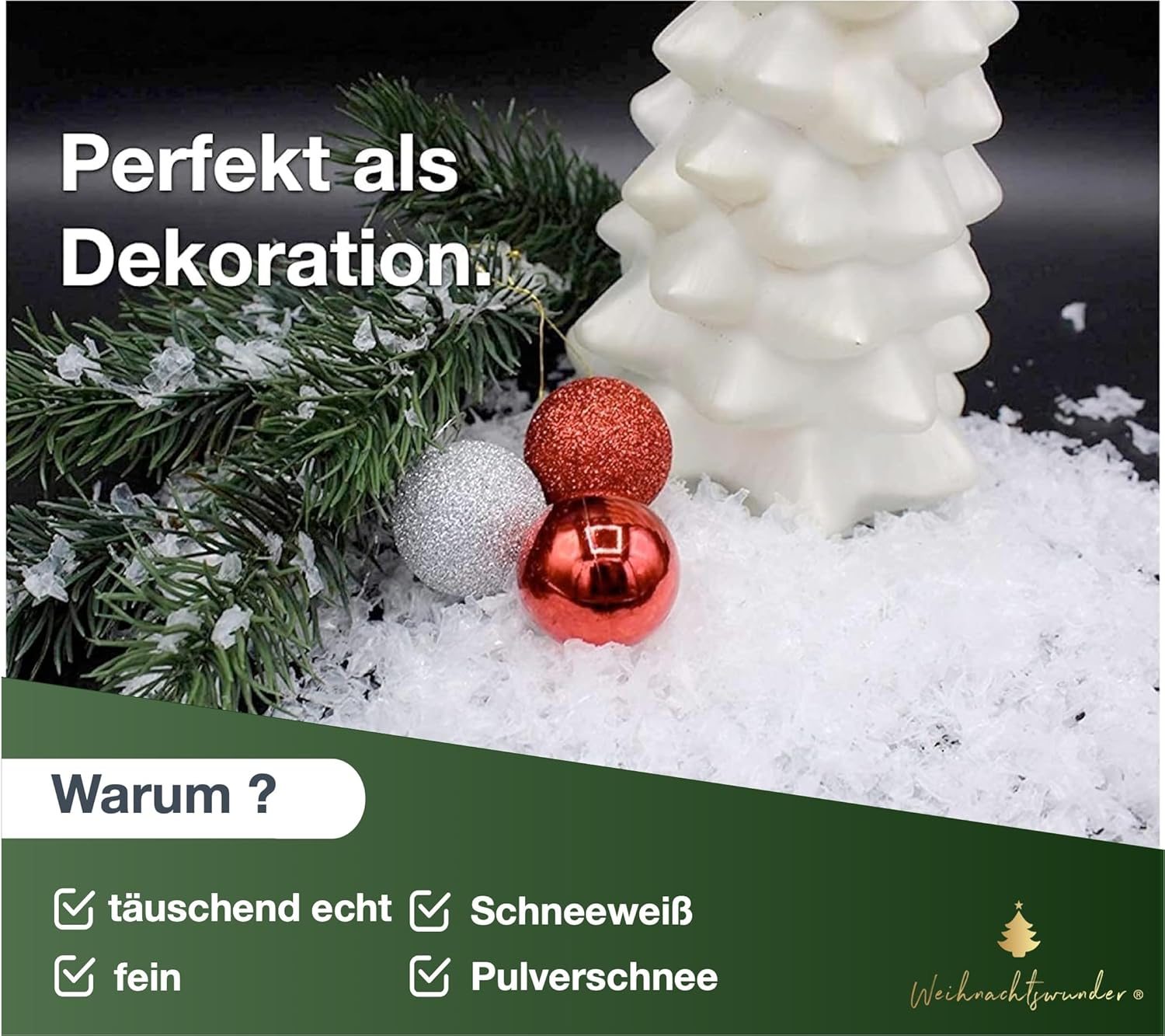 - Λεπτό χιόνι σε σκόνη: Ιδανικό για χριστουγεννιάτικη διακόσμηση και χειμερινή ατμόσφαιρα.