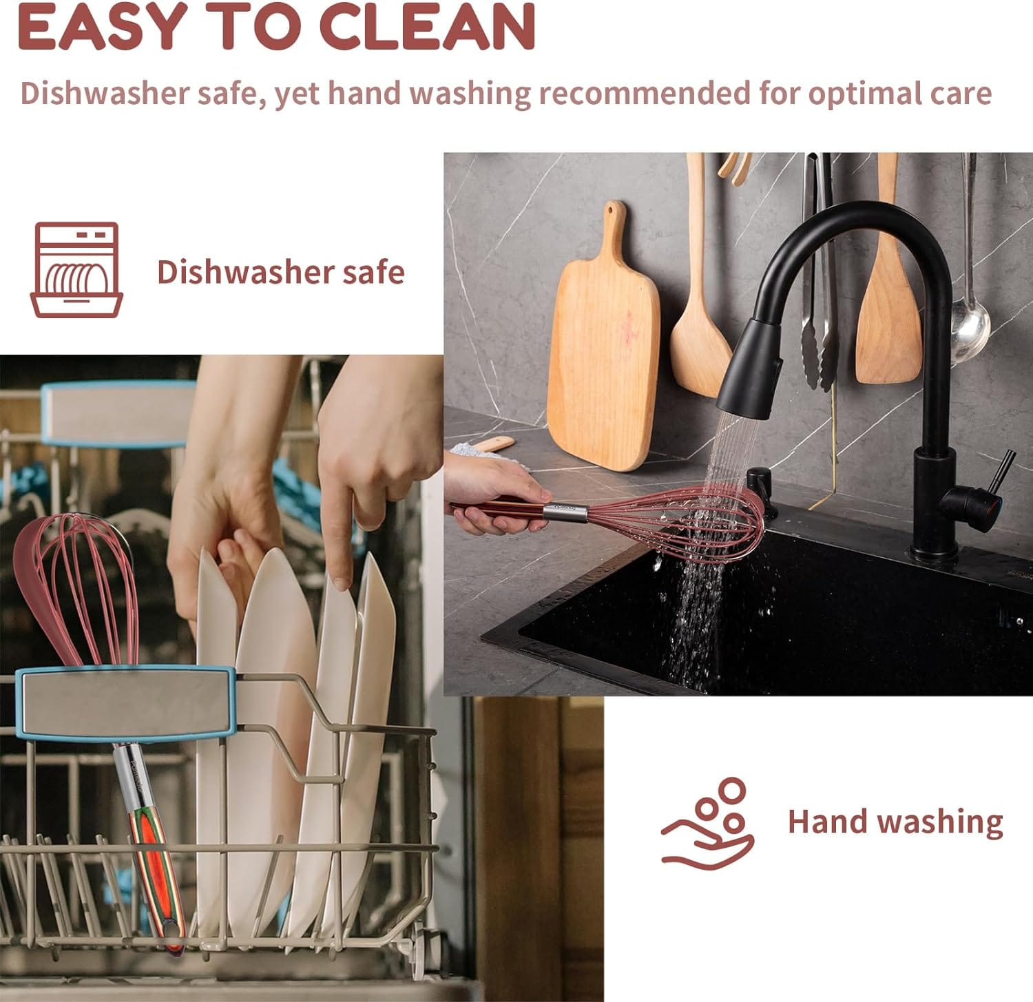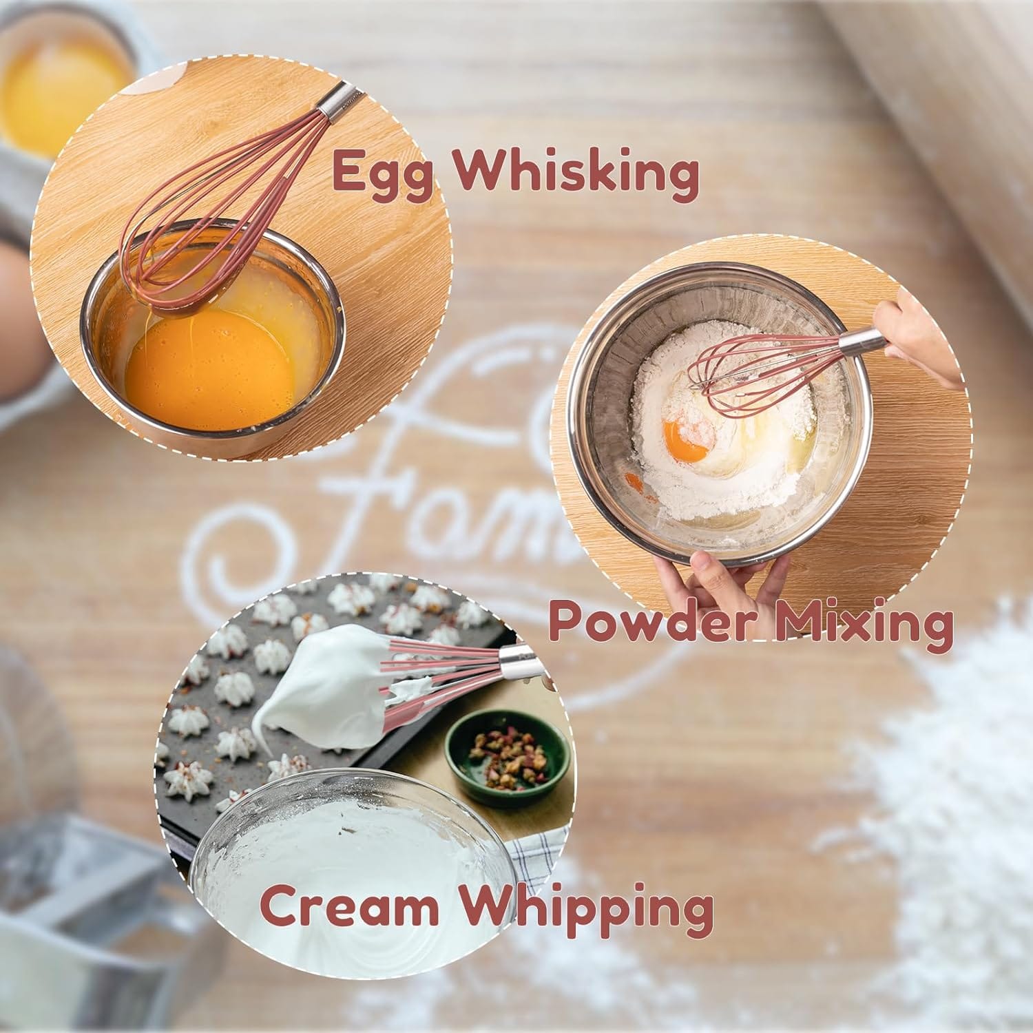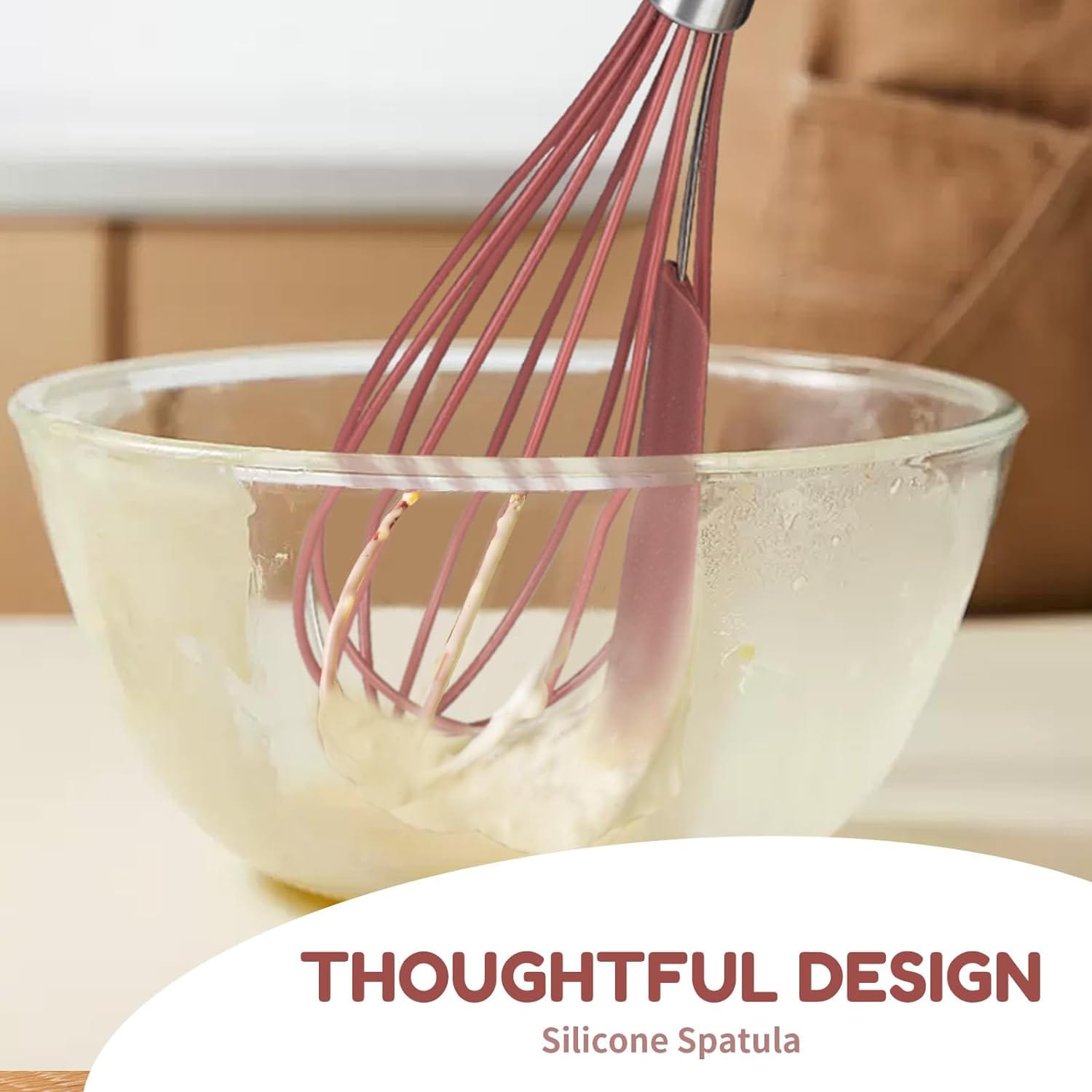 -Καινοτόμος σπάτουλα σιλικόνης: Με ενσωματωμένη σπάτουλα σιλικόνης, αυτό το ευέλικτο σύρμα είναι ο ιδανικός σύντροφος κουζίνας. Ξύστε και διπλώστε εύκολα τα υλικά, απλοποιώντας τις εργασίες μαγειρέματος και ψησίματος.