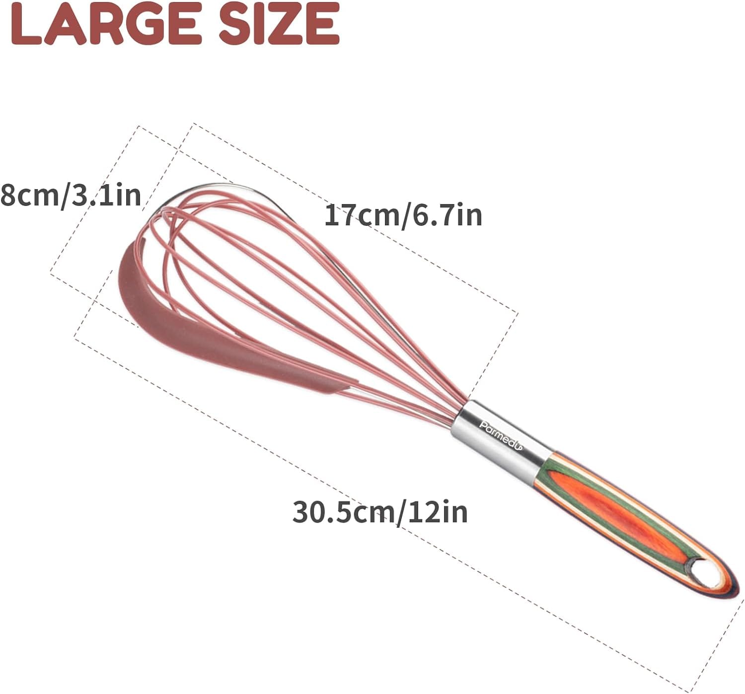 -Εξαιρετικό μήκος για εύκολο χτύπημα: Το ανοξείδωτο ατσάλι Parmedu διαθέτει σύρμα σιλικόνης μήκους 30,5cm (12 ίντσες), ιδανικό για αβίαστο χτύπημα σε μεγαλύτερες κατσαρόλες και μπολ.